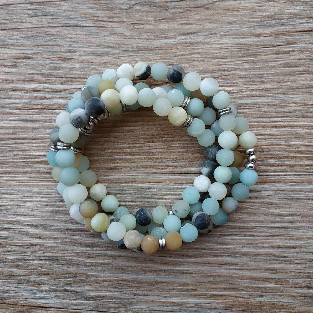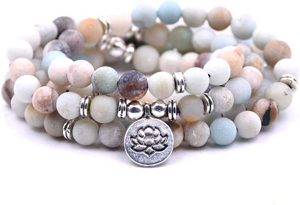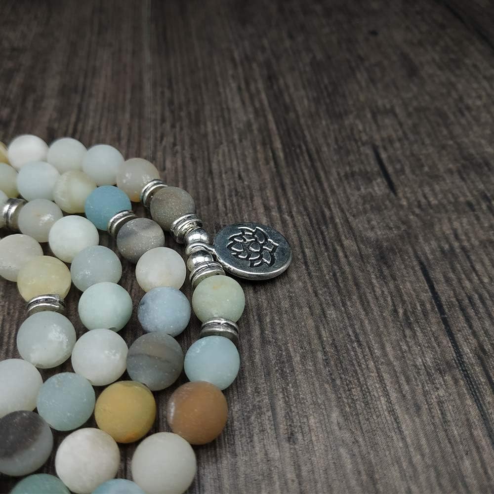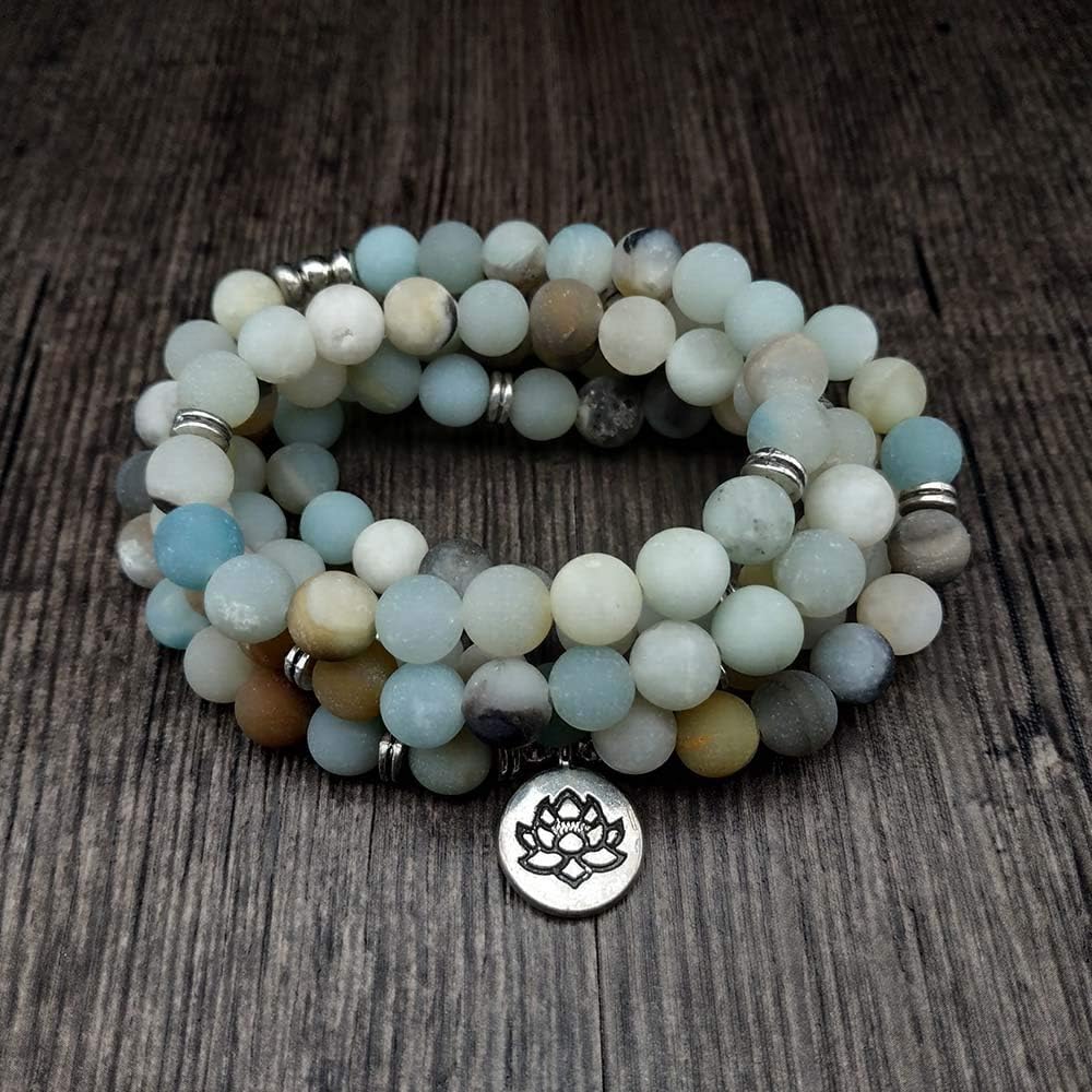 سوار اليوغا مالا 108 خرز طبيعي مع حلية اللوتس (أمزونيت)