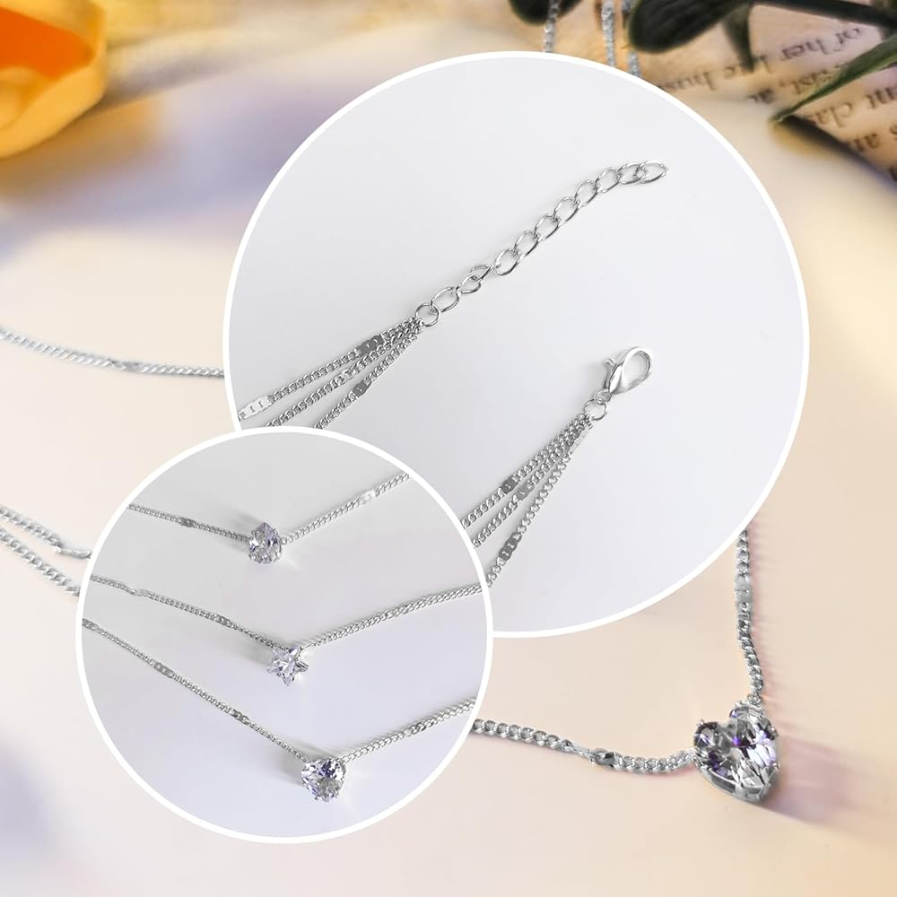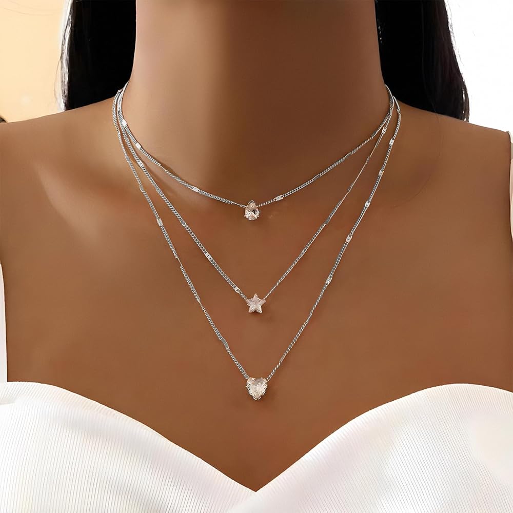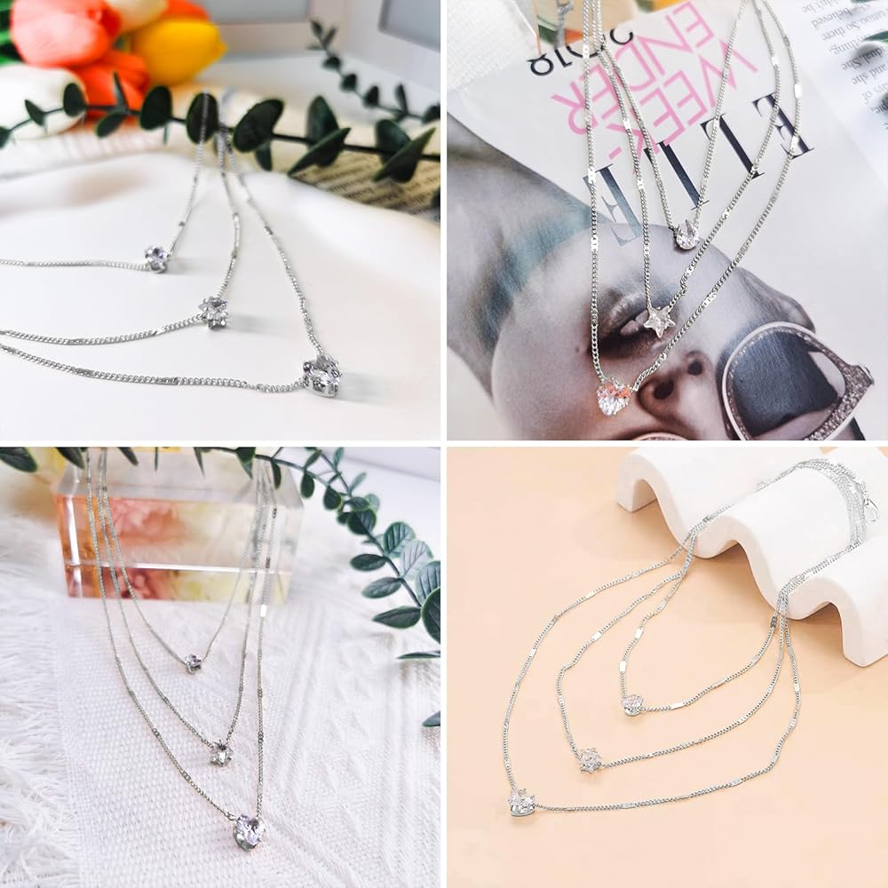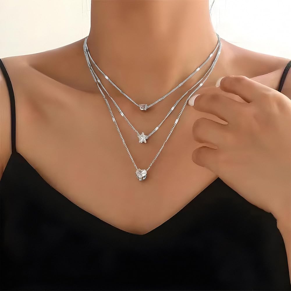 • المواد: قلادة النجمة الفضية للسيدات عصرية ومصنوعة من مواد سبائك، وقلادة من طبقات سلسلة مطلية بالفضة، وسيدوم اللون لفترة طويلة دون أن يفقد بريقه. لا يسبب الحساسية، وخالي من النيكل والرصاص لن يسبب الحساسية لبشرتك.