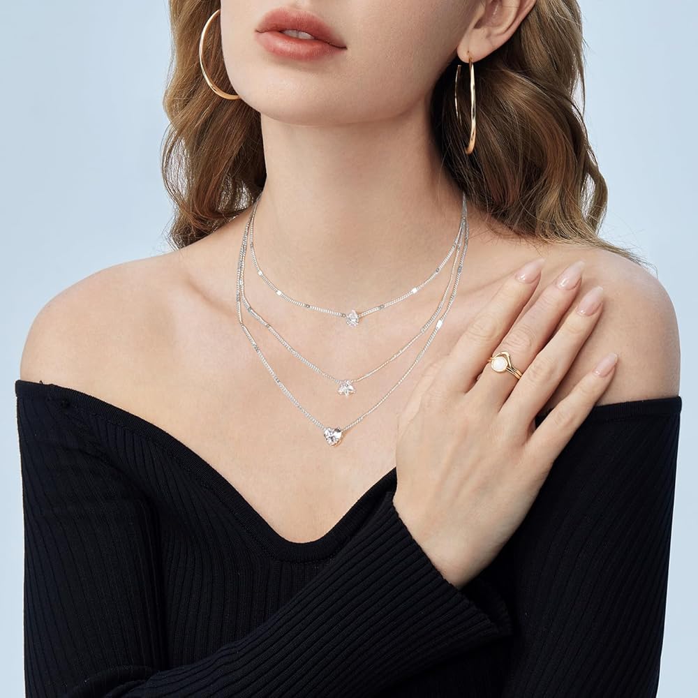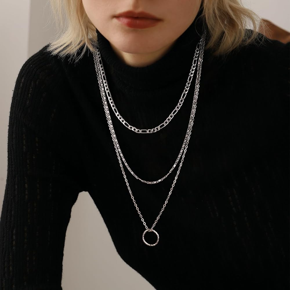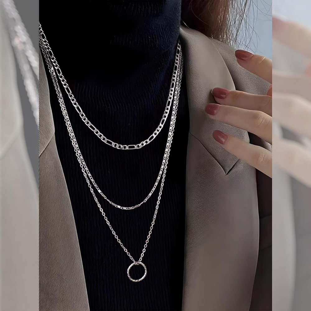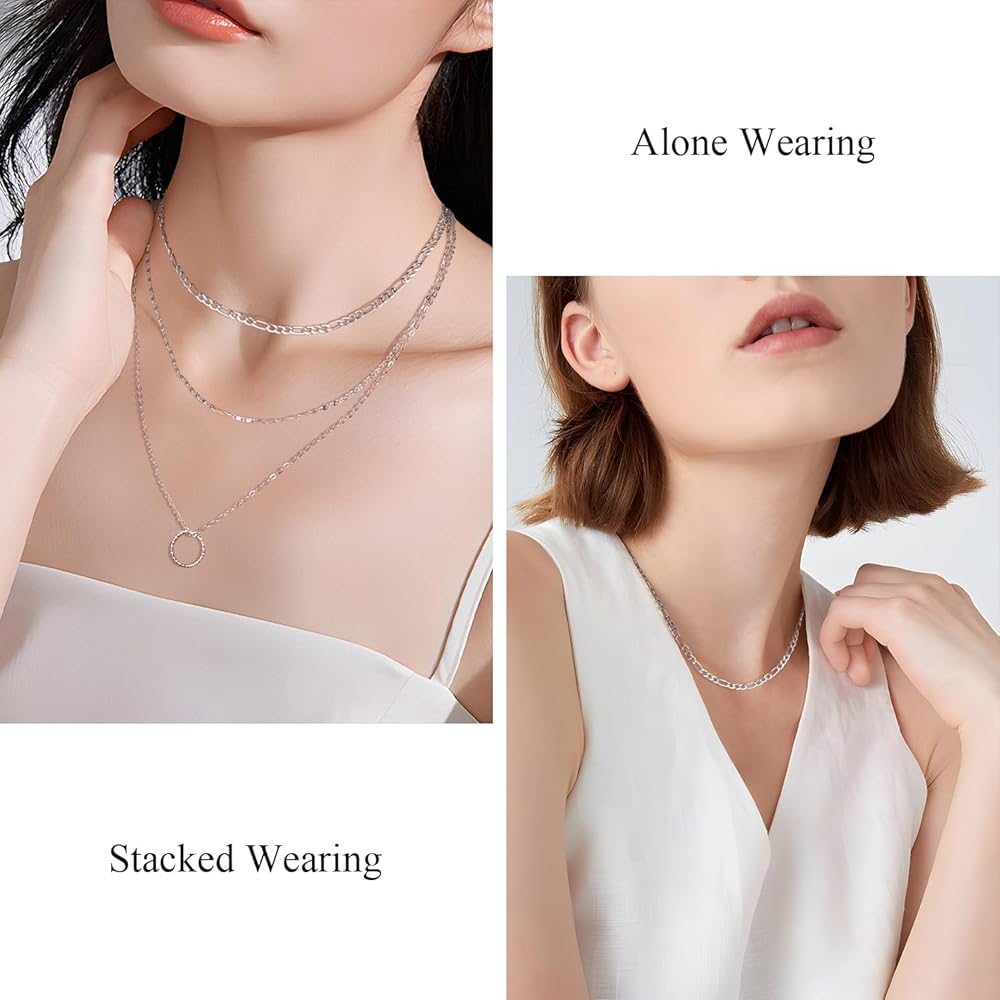 • تصميم شخصي: لمنع تشابك السلسلة، يرجى إزالتها ووضعها على حامل المجوهرات. تصميم مجموعة من القلادات النسائية، 3 في 1 سلسلة رقيقة مع عنصر عملة معدنية.