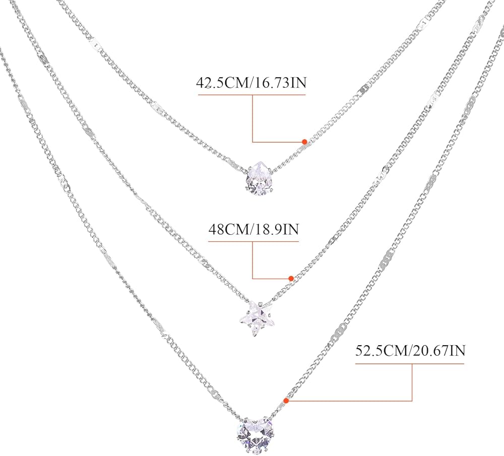 • الحجم: تتكون هذه القلادة الفضية ذات الطبقات من 3 قلادات بالأحجام التالية: 13.6 بوصة + 2.8 بوصة/13.8 بوصة + 2 بوصة/ 18.9 بوصة + 2 بوصة. تصميم مشبك على شكل جراد البحر، سهل الفتح والإغلاق. القلائد ذات الطبقات الرائعة هي قلادات ترتديها النساء والفتيات.