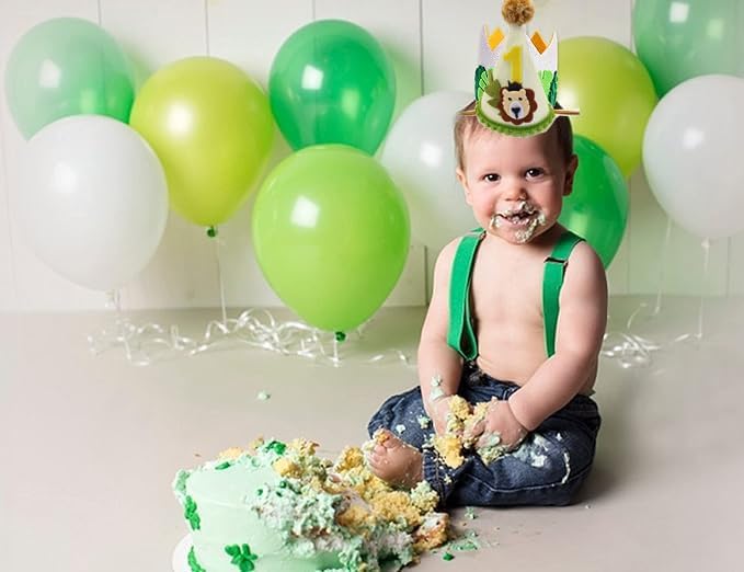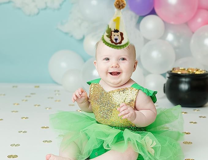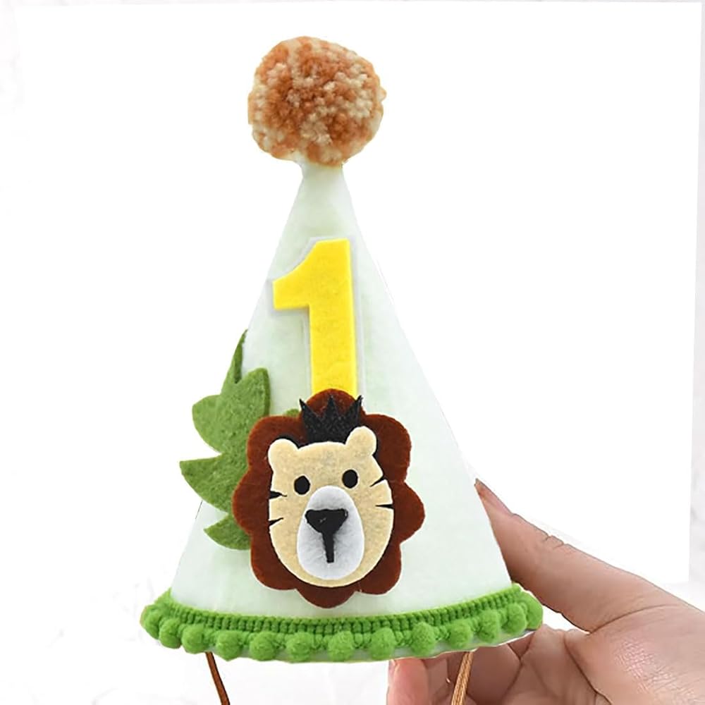 تصميم خاص - تاج عيد ميلاد الأسد هذا مصنوع من لباد أبيض كريمي مزخرف بكرات خضراء زيتونية، والأسد اللطيف مزين بورقة وطبقات مزدوجة رقم 1 على سطح قبعة عيد الميلاد سوف يجذب انتباه طفلك بالتأكيد.