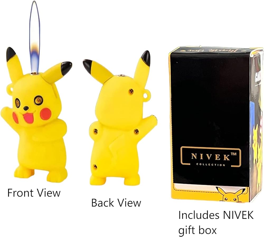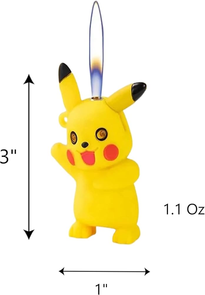3D yellow anime character lighter with pink flame.