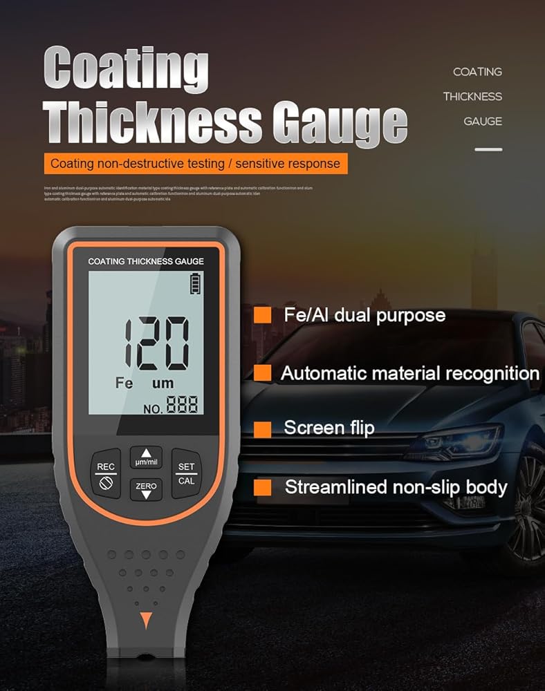 • يقوم هذا الجهاز الدقيق بقياس سماكة الطلاء أو الطلاء بسرعة ودقة على مجموعة واسعة من الأسطح المعدنية. إنه مثالي لتقييم سمك الطلاء على السيارات، مما يجعله أداة قيمة لكل من الهواة والمحترفين في التصنيع وورش العمل ومحلات الطلاء وصناعة السيارات.