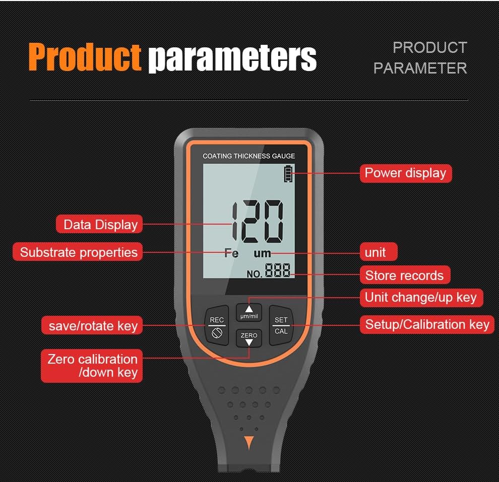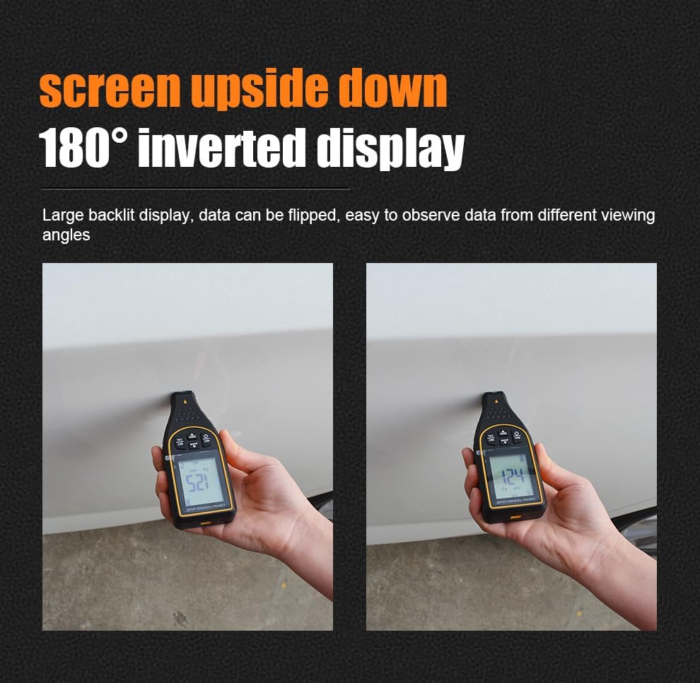 مقياس سمك طلاء السيارة، مقياس سمك الطلاء الرقمي لاختبار عمق طلاء السيارة بدقة 0.1 ميكرومتر، التعرف التلقائي على المواد Fe وNFe