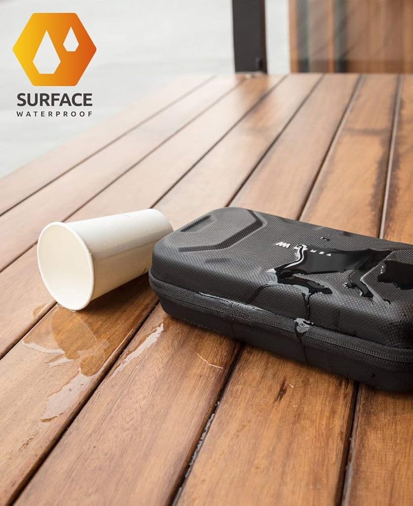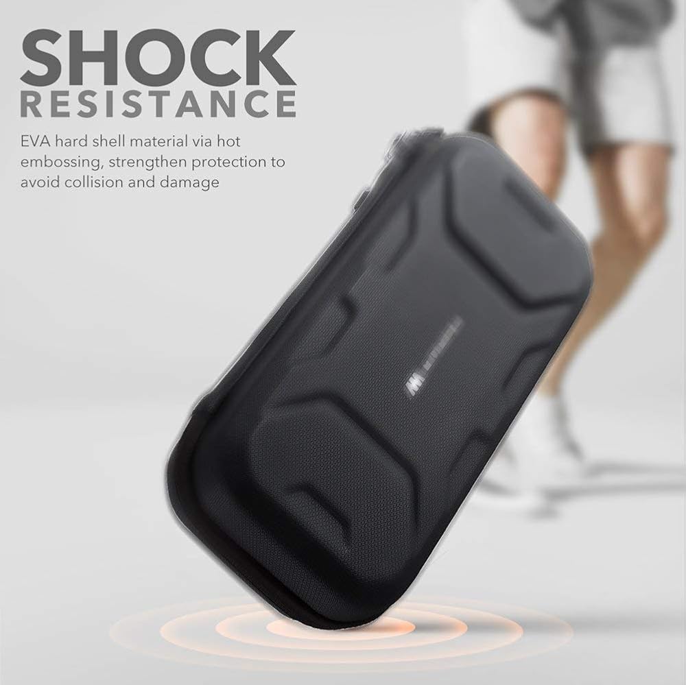 ✔ offers dual protection from shocks and drops with a hard, water-resistant shell made of durable EVA material