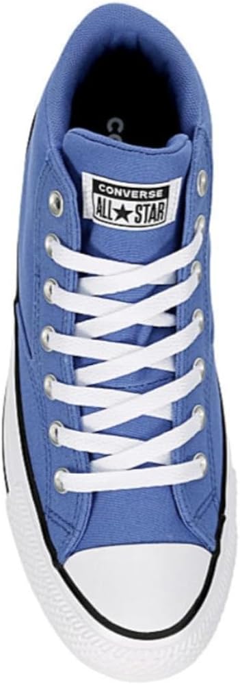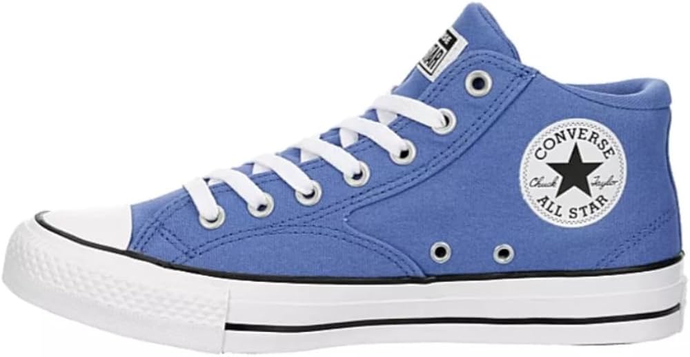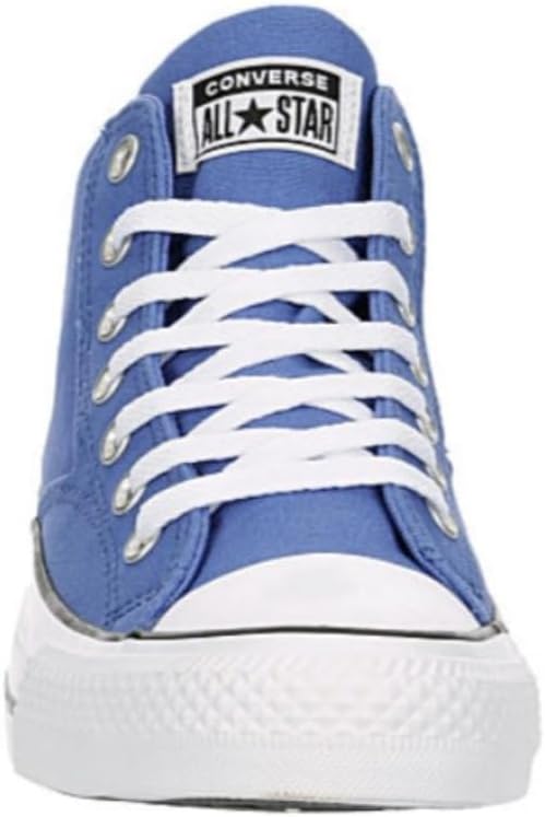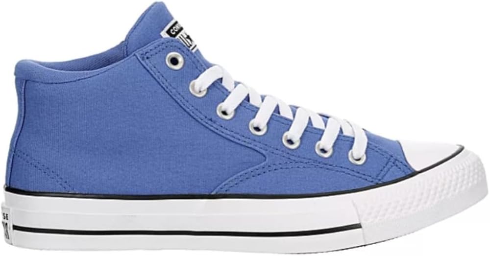 Street style meets Converse heritage in the Converse Unisex Chuck Taylor All Star Malden Street Mid High Canvas Sneaker - Lace up Closure Style - Ancestral Blue/White/Black. With a canvas upper featuring stitched detailing and the classic ankle patch for extra style, this lace-up shoe also has a comfy padded collar & tongue. The mesh lining & OrthoLite sockliner airily cushion your foot while the rubber outsole offers that premium diamond patterned traction.