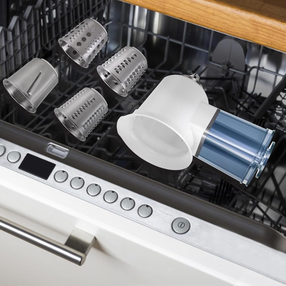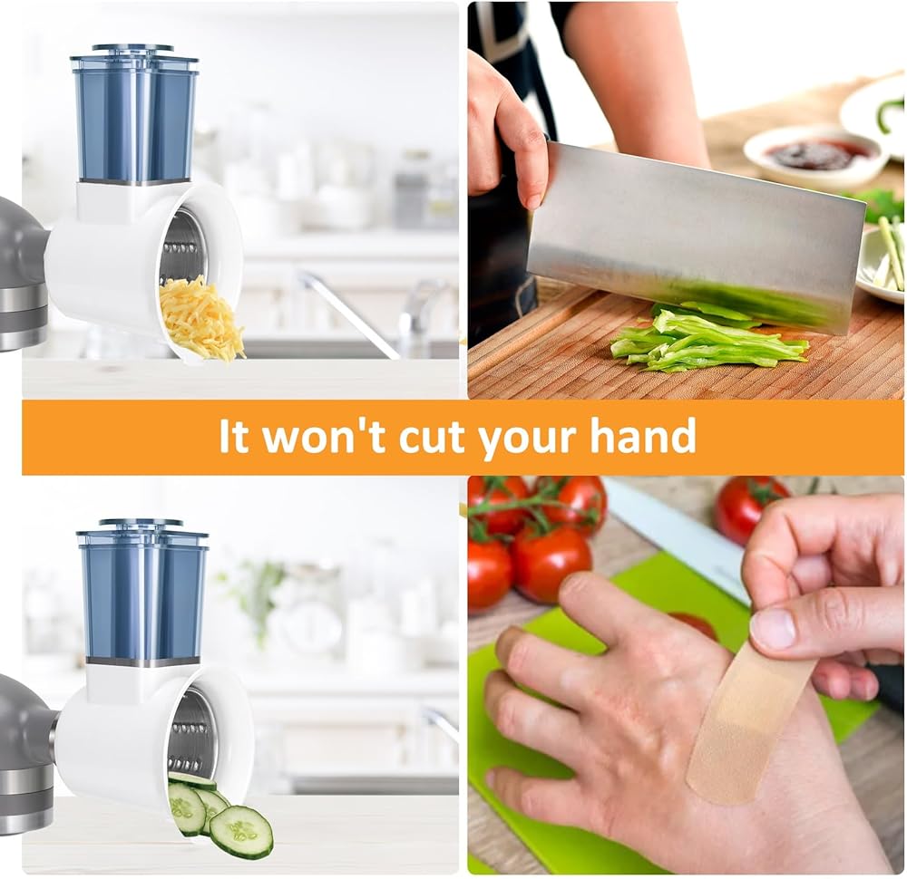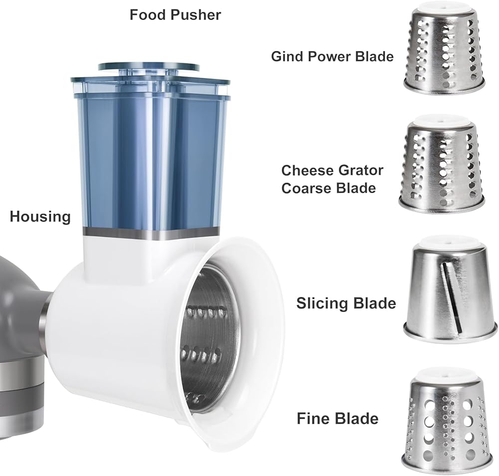 【مواد صالحة للطعام】 ملحق تقطيع التقطيع الذي تمت ترقيته حديثًا من Airpro لخلاط حامل KitchenAid مصنوع من الفولاذ المقاوم للصدأ والبلاستيك الآمن غذائيًا، وقد تمت ترقية الشفرات من 3 إلى 4، مما يجعل ملحق مبشرة الجبن في المطبخ لخلاط حامل مساعد المطبخ متساويًا. أكثر تنوعًا. جميع المنتجات آمنة للاستخدام في غسالة الأطباق!