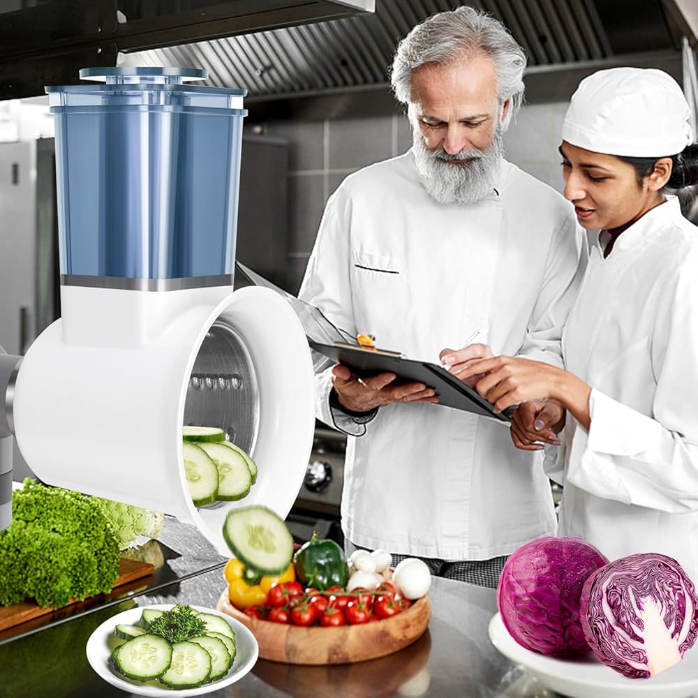 【صانع سلطة متعدد الاستخدامات 】- تحتوي ملحقات وملحقات مساعد المطبخ من Airpro على 4 شفرات قابلة للتبديل، استخدمها لتقطيع الطعام وتمزيقه وبشره بسهولة، رائعة لبشر الجبن والكوسة والخيار والبصل والجزر والبطاطس والمفرقعات والشوكولاتة والفول السوداني، اللوز ومكعبات الثلج وأكثر من ذلك بكثير، استخدمها للسلطات وسلطة الكرنب والبيتزا والطبقة والتاكو والحلويات والعصائر والمزيد من الأطباق.