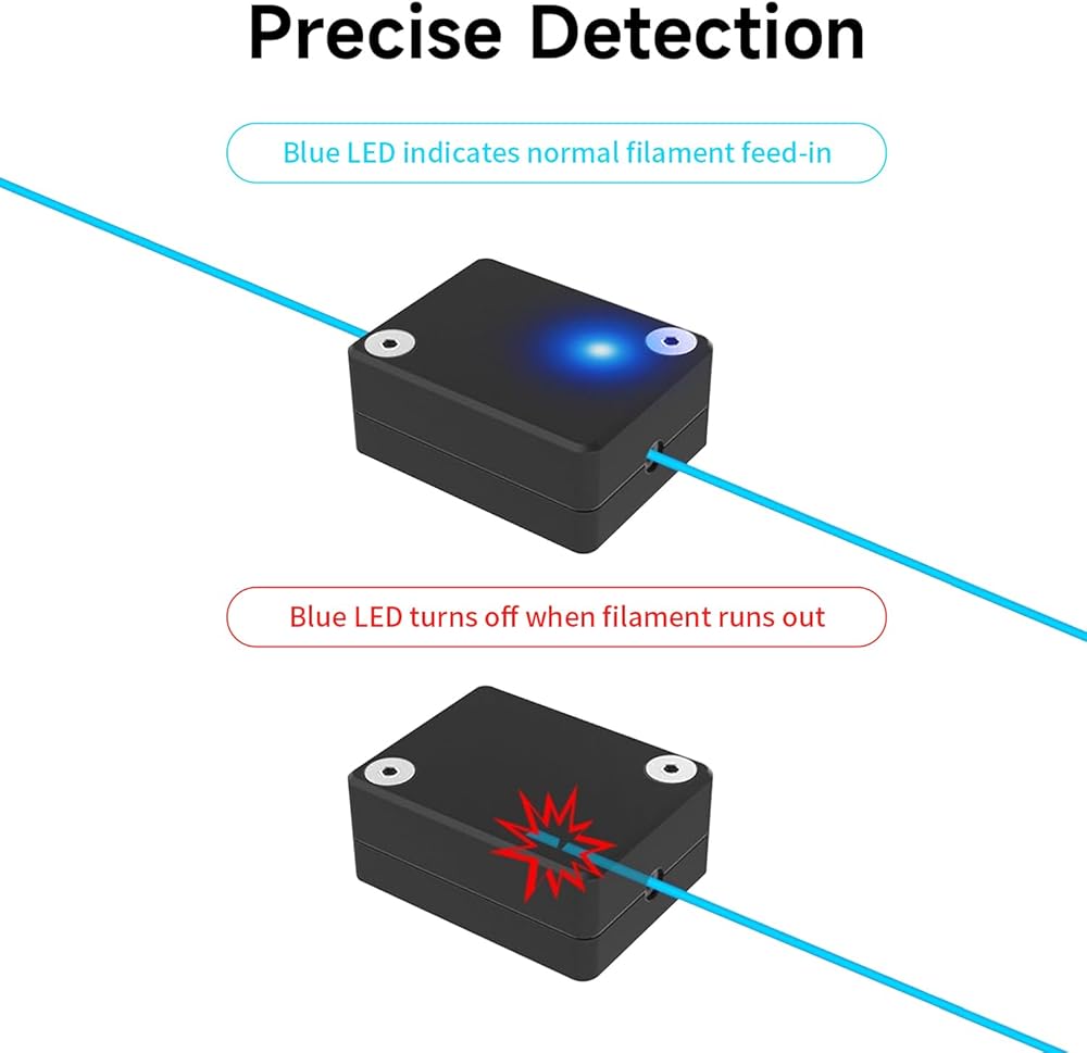 【Precise Detection】- When filament feed-in normally, the blue LED indicator light shows. The blue LED turns off when the filament runs out.