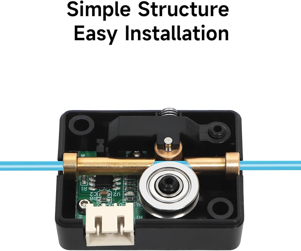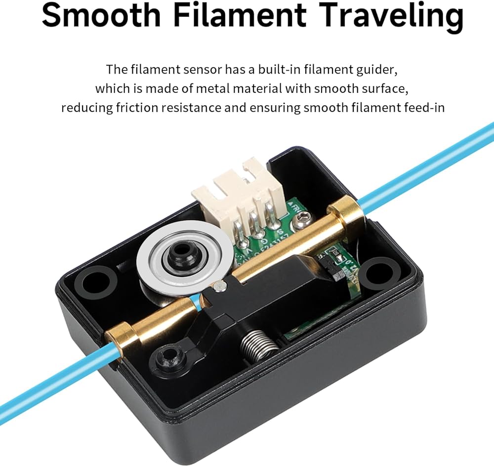 【Smooth Filament Traveling】- The filament sensor has a built-in filament guider, which is made of metal material with smooth surface, reducing friction resistance and ensuring smooth filament feed-in.