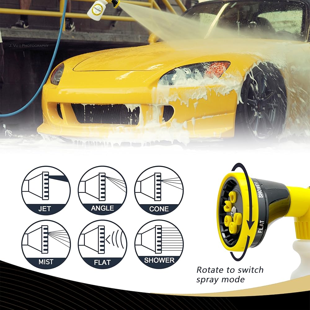 【مسدس إسفنجي وبخاخ أفضل】يحتوي هذا المسدس الرغوي على فوهة ذات 6 وظائف، يمكنك تبديل رأس المسدس بحرية لتلبية احتياجات غسيل السيارات وسقاية الحديقة، مع ضغط 2.5 إلى 6 بار مناسب لتنظيف السيارة واستخدام سقاية الحديقة.