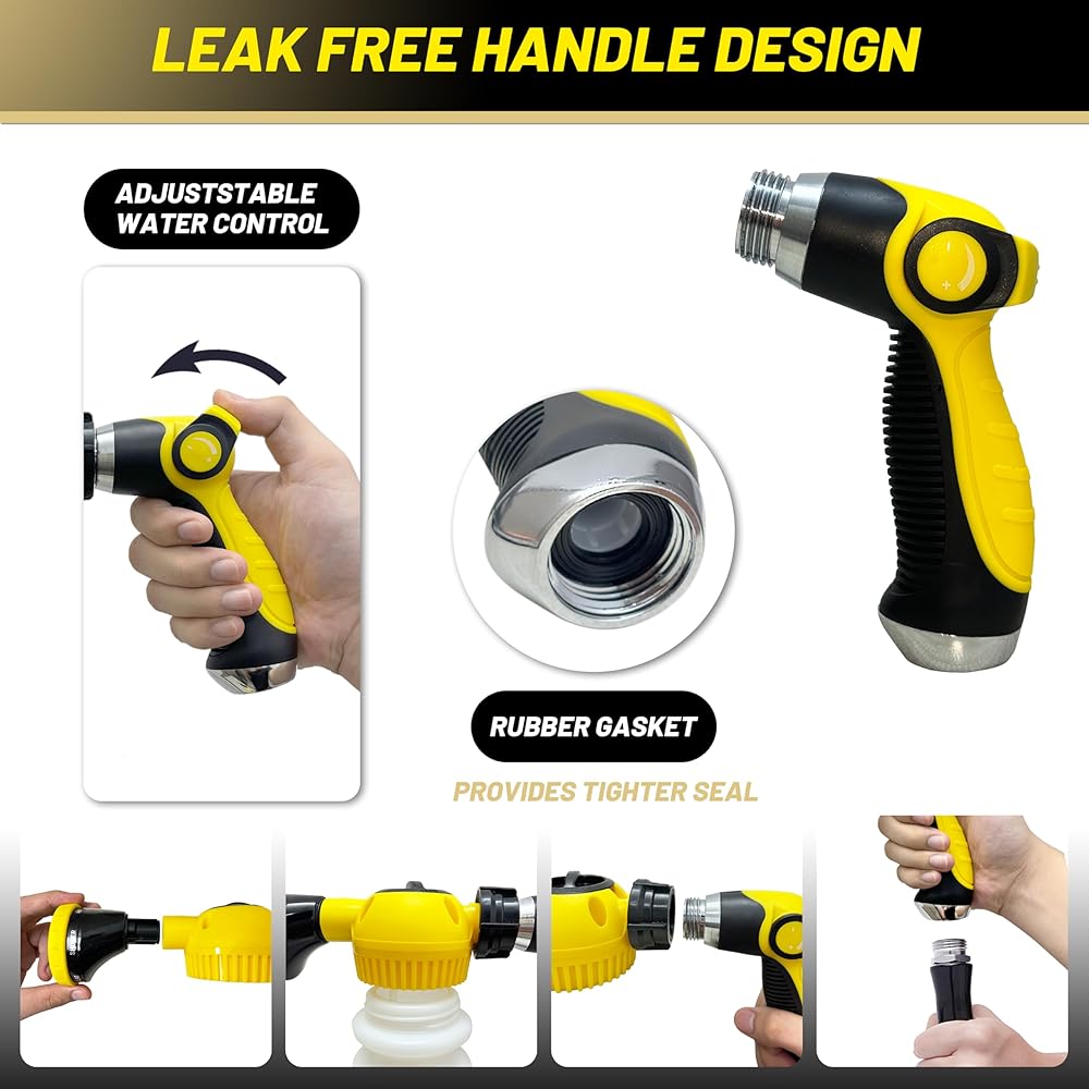 【يناسب معظم الخراطيم والصنبور】 مسدس الرش مناسب لأنابيب المياه 5/8 ويمكن أيضًا إقرانه مع 1/2 أنابيب مياه باستخدام موصلات مناسبة، ومع موصل صنبور عالمي، لا داعي للقلق بشأن توصيل الصنبور. . توفير تجربة غسيل وسقي أفضل بالنسبة لك.