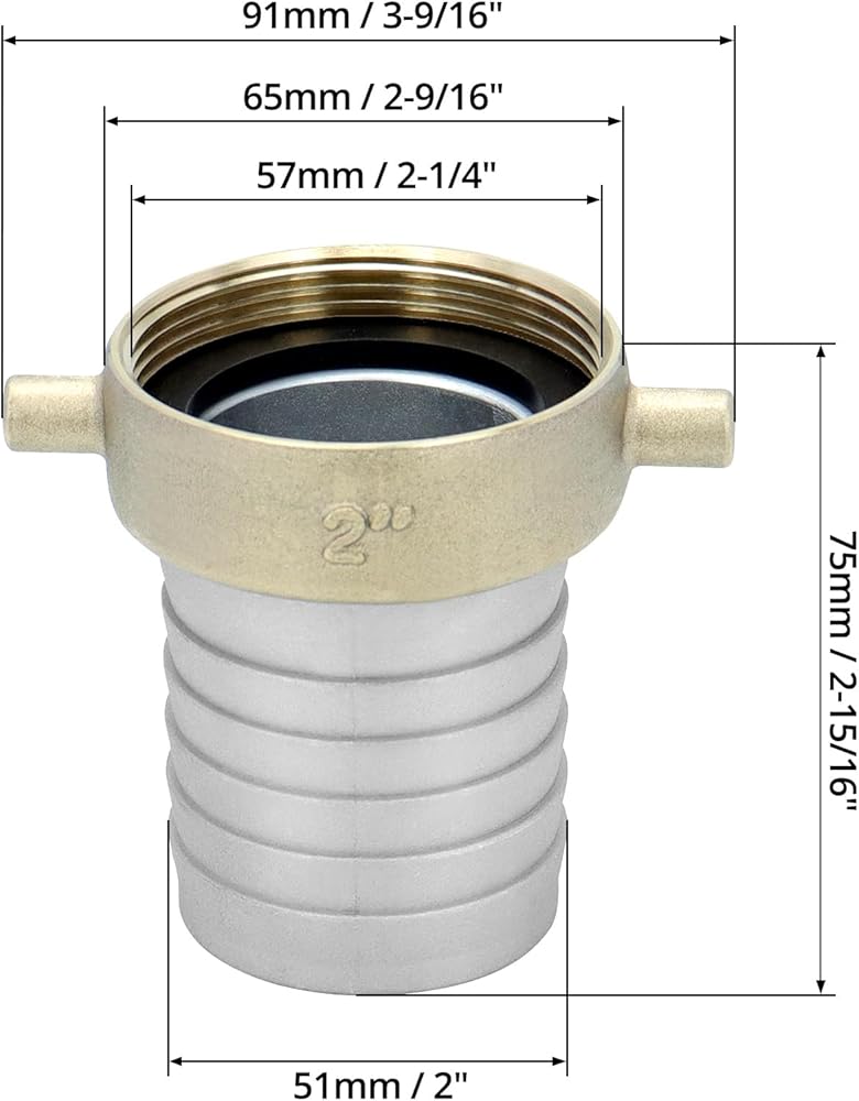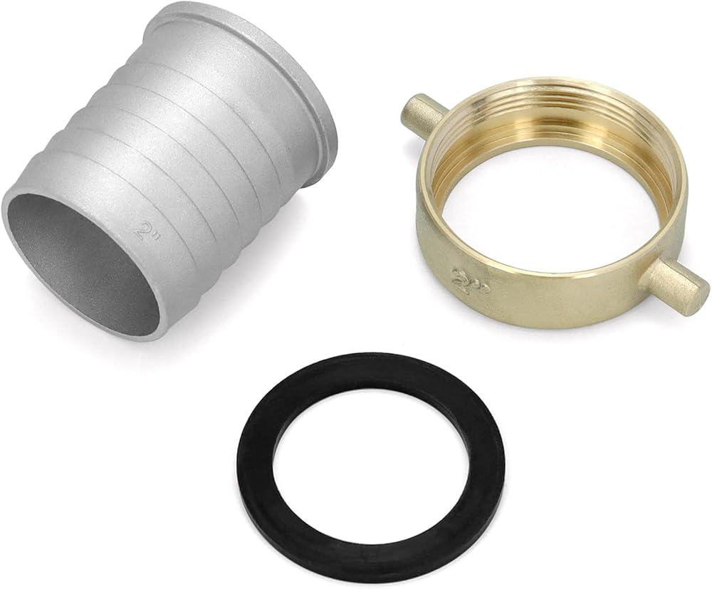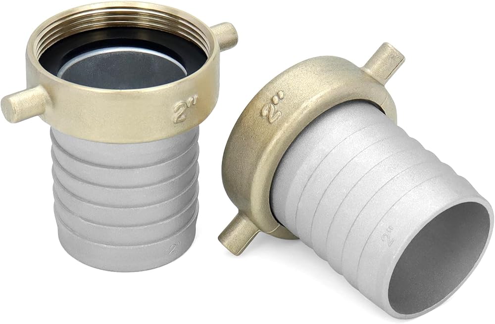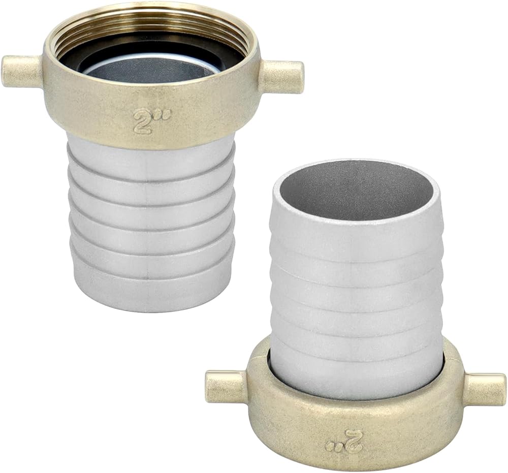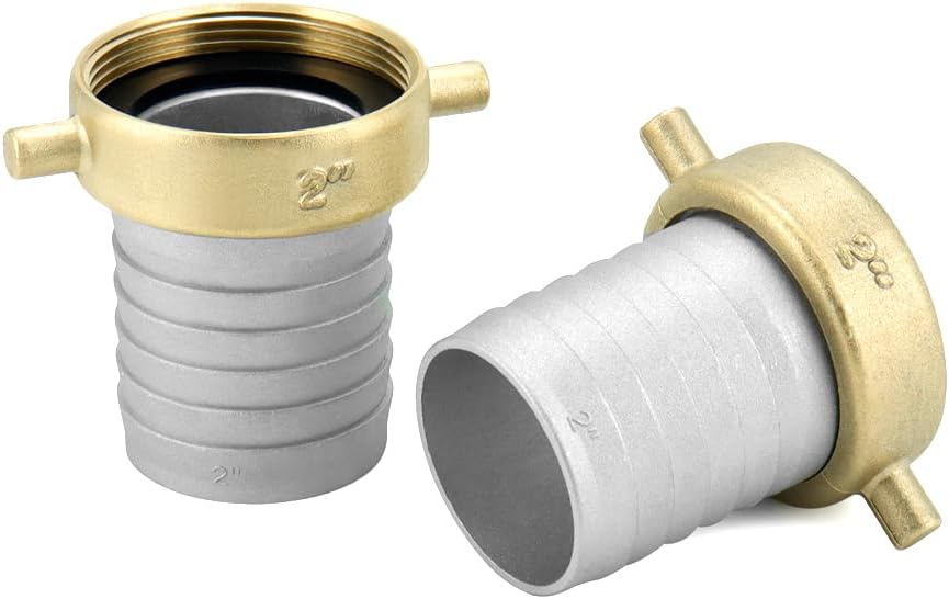 QWORK من الألومنيوم والنحاس مقاس 2 بوصة مناسب لخرطوم العروة الأنثوية للتعامل مع السوائل - متوافق مع خراطيم المياه ويتطلب حشية