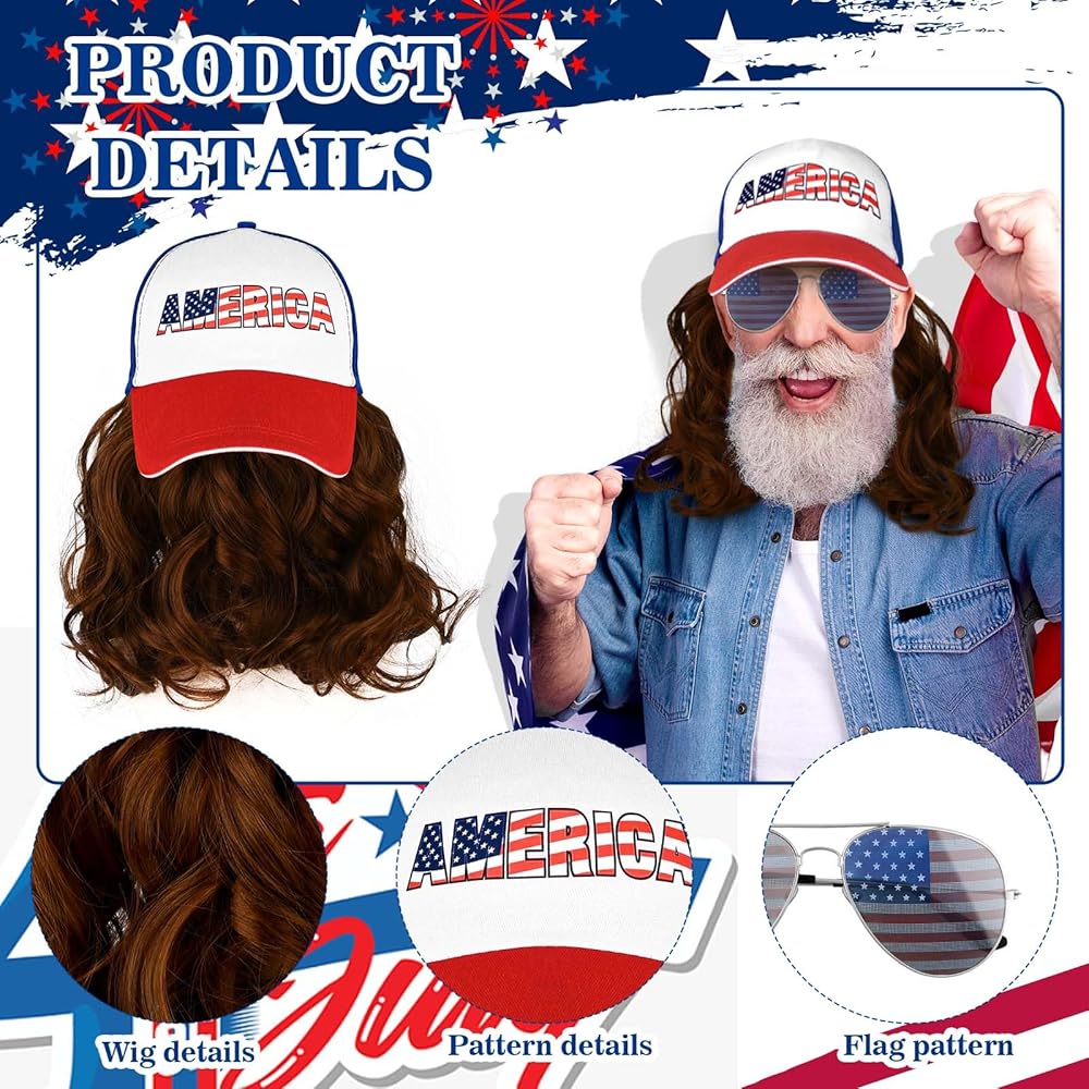 Features: Our patriotic pattern mullet hats with hair, USA beverage holder belt and American flag funny sunglasses are easy to match with various clothing ,and suitable for sending to your mother, father, husband, neighborsand other friends who are fond of cosplay, to make them happy and enhance the festive atmosphere.