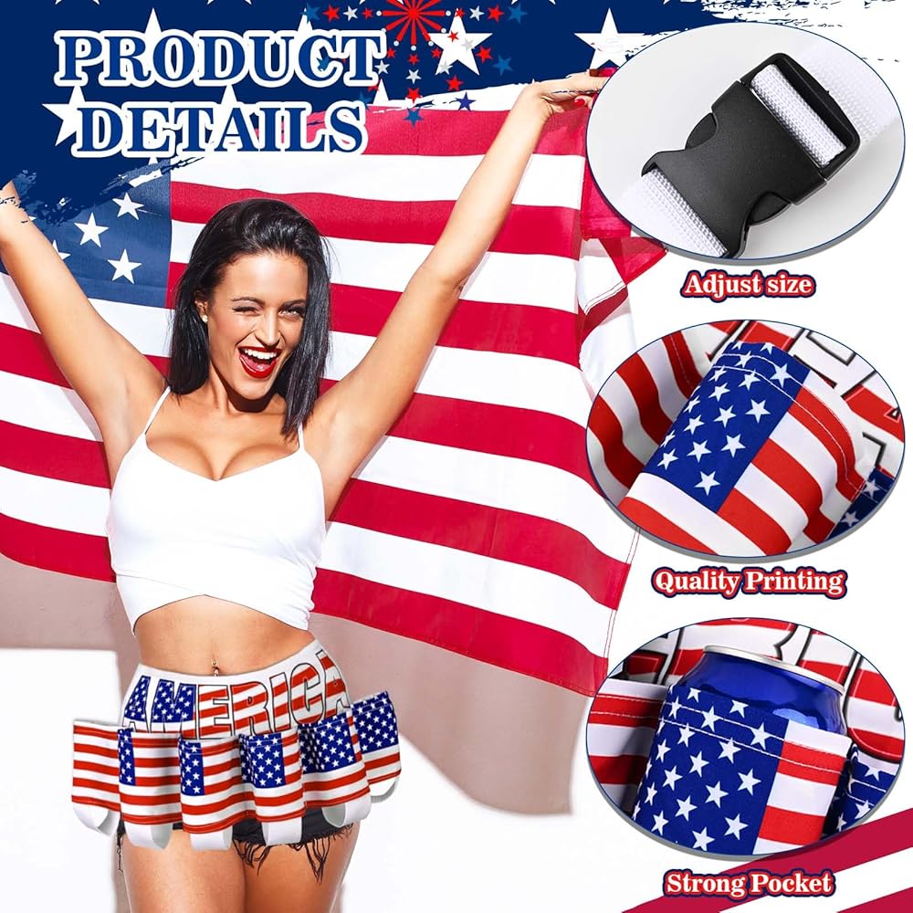 Suitable Size for Most: The 80s patriotic belt is designed with an adjustable buckle size, and the suitable waist size is 31.5-53.2 inches / 80-135 cm. The belt has 6 beer holders, suitable for various standard sizes of cans. The hat has a circumference of 22-22.9 inches/56-62cm, suitable for most people's sizes.