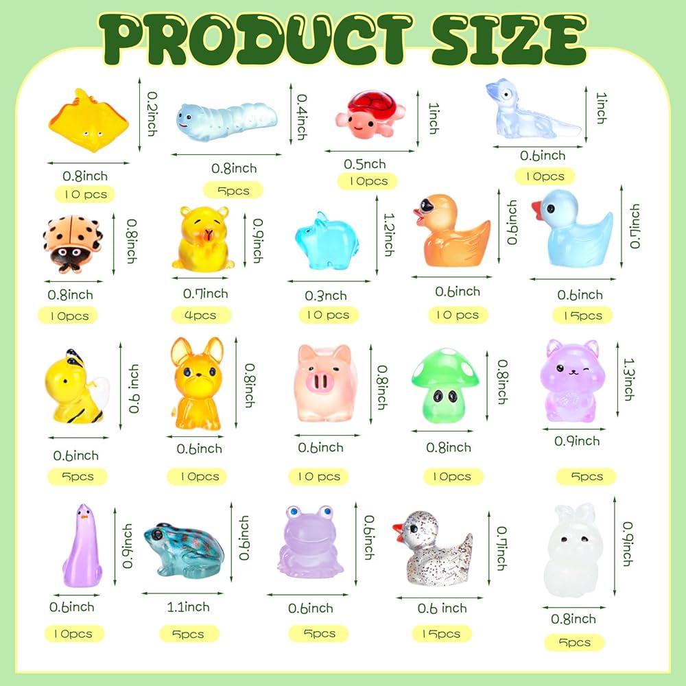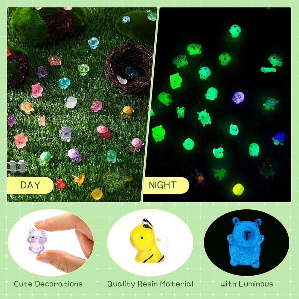 These luminous animals are colorful, cute and vivid. You can use luminous mini animals to decorate your dollhouse, potted plants and various DIY miniature landscape decorations to make your decor more attractive