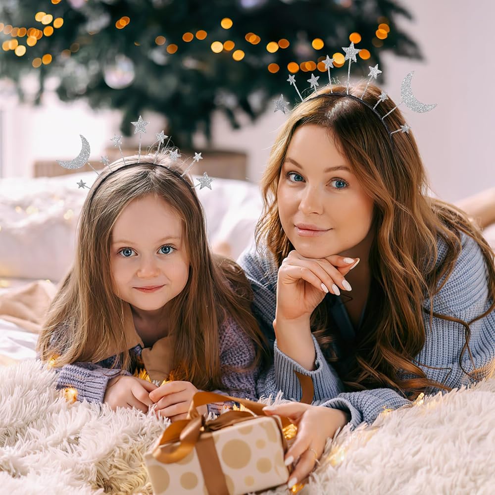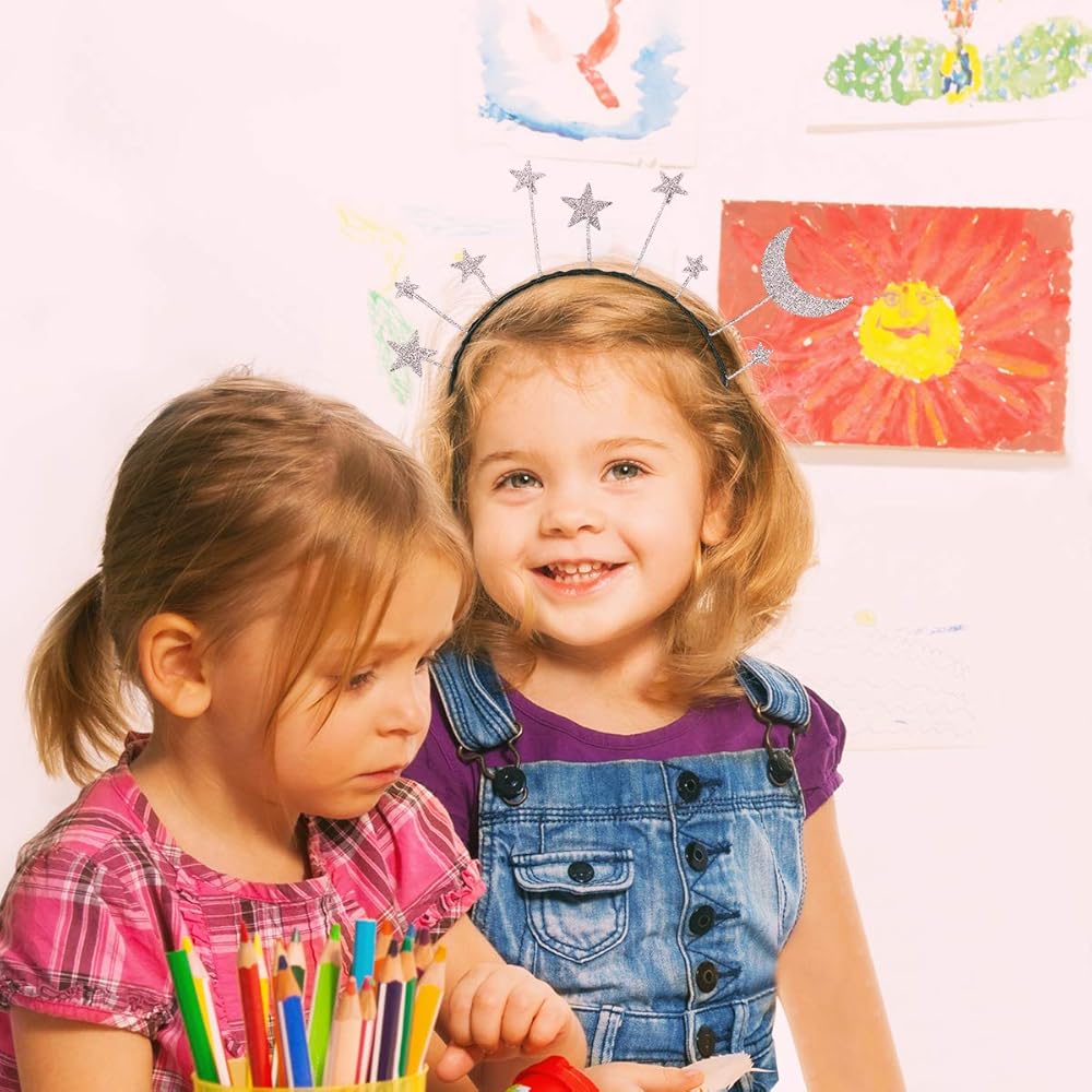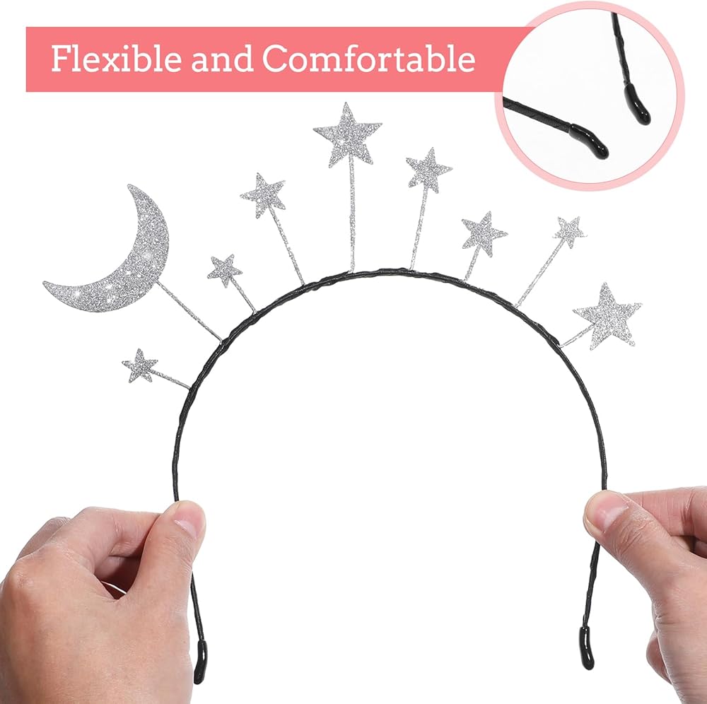 2Pcs Star Moon Headband Space Headbands Star Headband Costume Planet Headband Moon Headpiece for Birthday Party Hair Hoop
