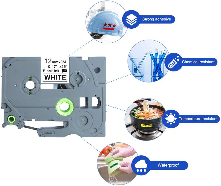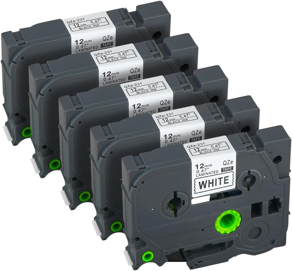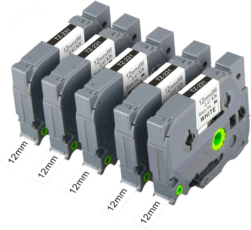 • Package & service: 5 Pack TZe-231 Label Tape with 1/2"x26.2ft( 12mmx8m), Black on white tape. We offer ISO-9001 approved. 24-hour professional service center, full refund within 30 days, any after-sale problem please contact us within 12 months after you received it