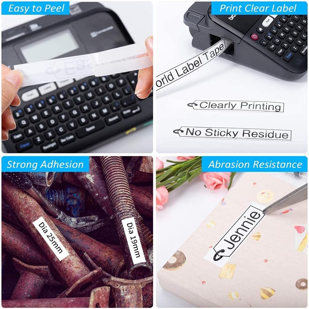 • Advantage: Standard Laminated label tape with PET Protective coating can resist water, grease, Grime, chemical, temperature, anti-corrosion, anti-UV. Printing in crisp text, not easy fading. New update mould makes printing more fluency, prevent any jamming and breaking of tape. Defective rate less than 1%. Won't leave residue behind when peeled off most surfaces. Won't smudge or smear