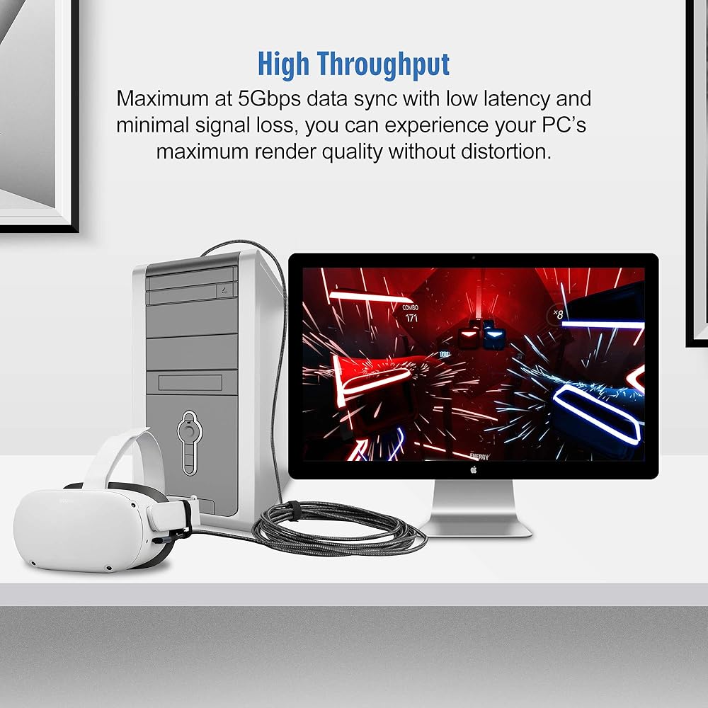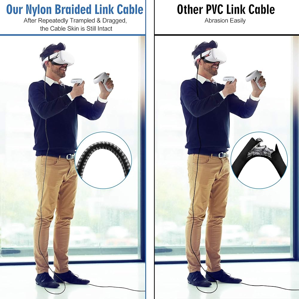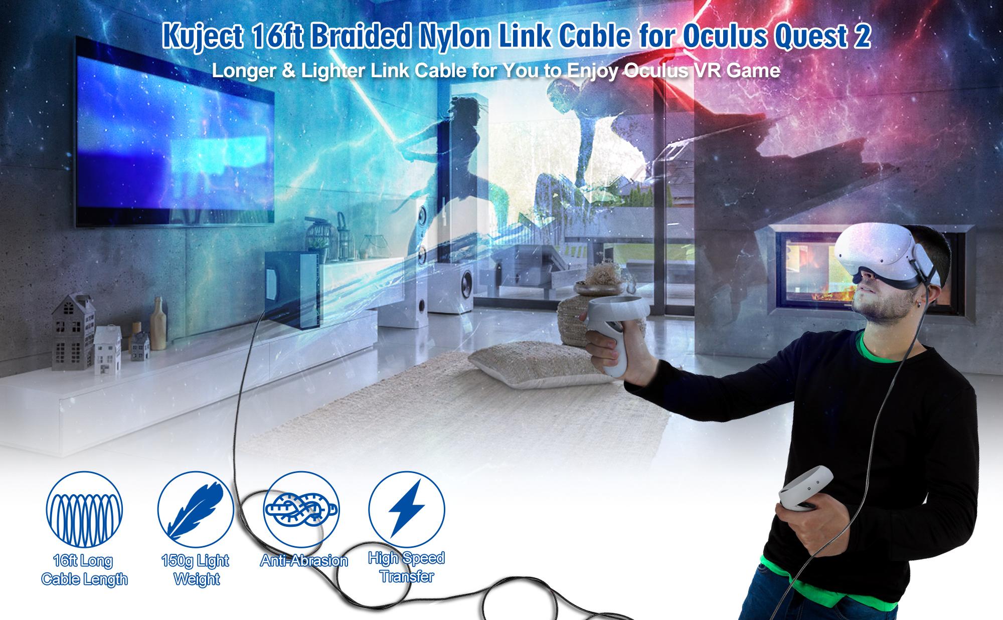 • أطول وأخف وزنًا لتجربة أفضل لألعاب الواقع الافتراضي - يمنحك الكابل الذي يبلغ طوله 16 قدمًا حرية التفاعل مع البيئة عند ممارسة الألعاب. مغطى بالنايلون المضفر، وهو أخف بحوالي 50 جرامًا من كابل TPU العادي الذي يبلغ طوله 16 قدمًا.