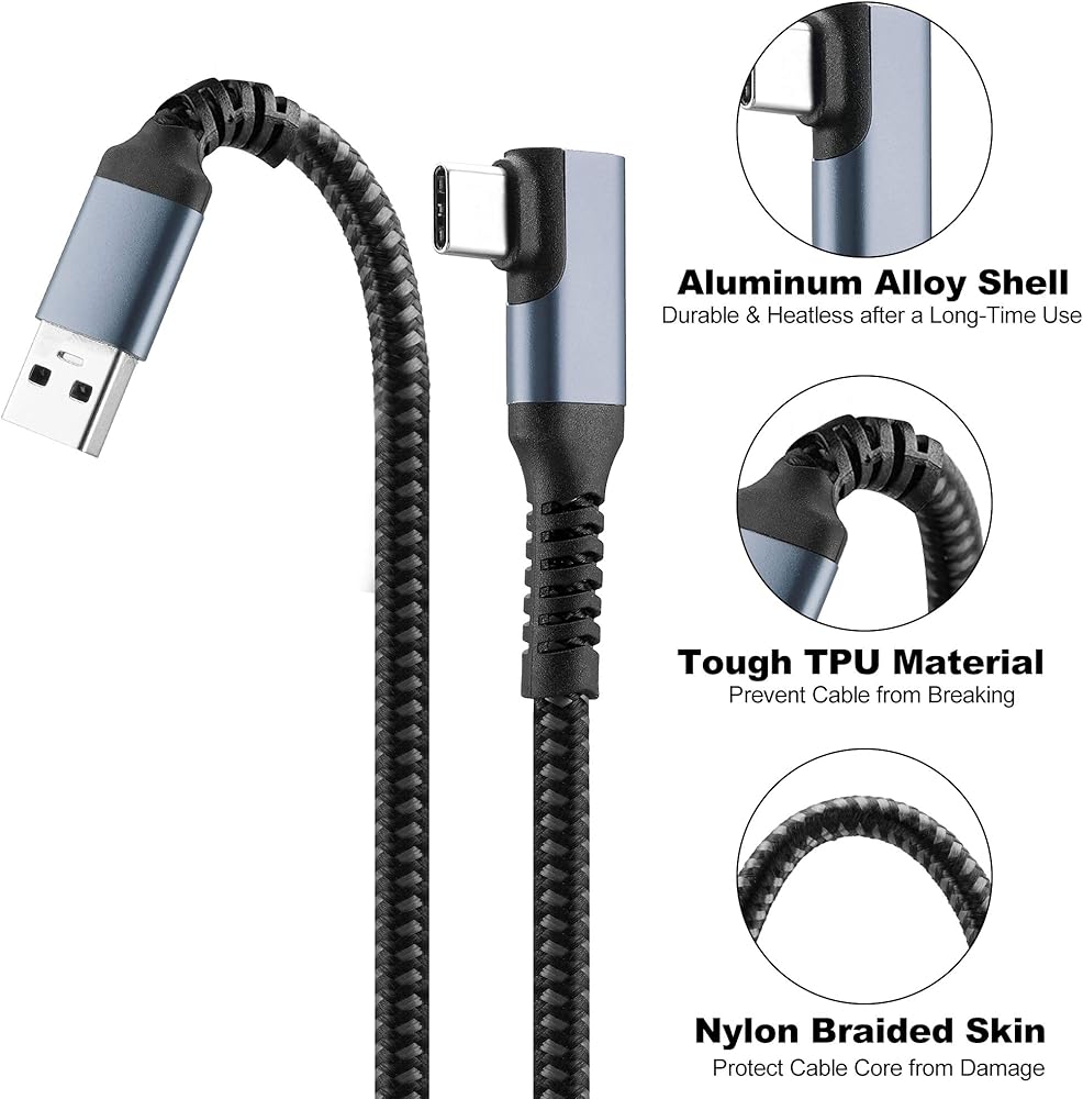 متوافق مع كابل توصيل Oculus Quest 2 بطول 16FT USB 3.0 من النوع A إلى C، سلك شحن طويل مضفر من النايلون من Kuject، سلك شحن تمديد بيانات الطاقة باللون الرمادي، ملحقات ألعاب الواقع الافتراضي لـ Oculus Quest