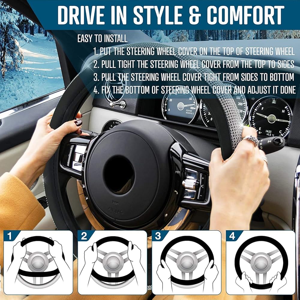 • سهولة التركيب: تصميم سهل الارتداء يجعل التثبيت سريعًا وسهلاً. ما عليك سوى تحريك الغطاء على عجلة القيادة وستكون جاهزًا للانطلاق