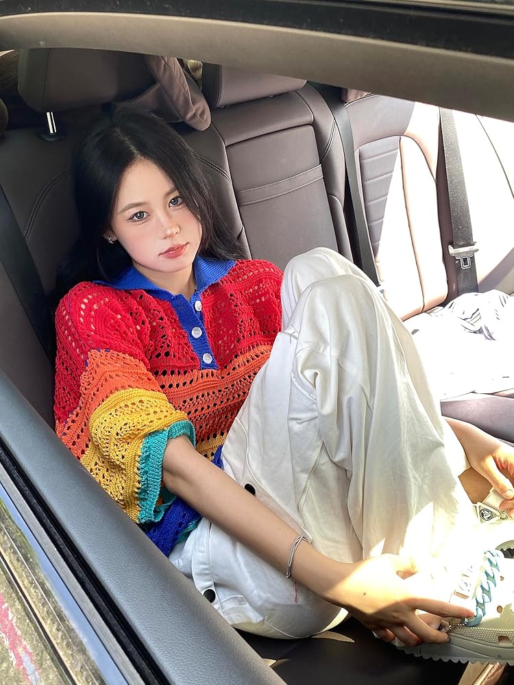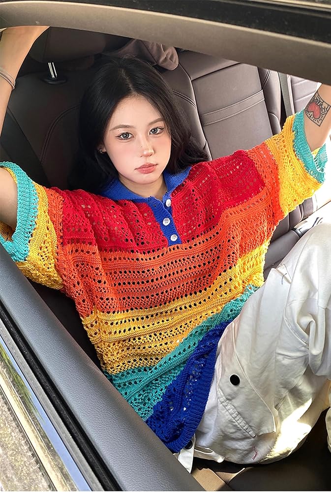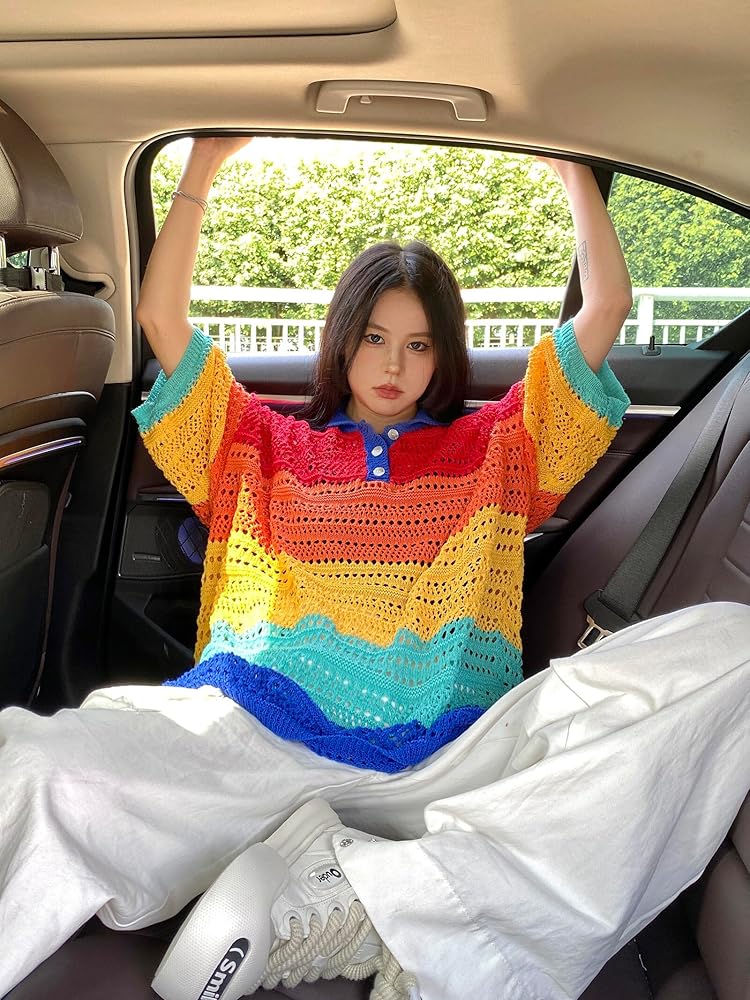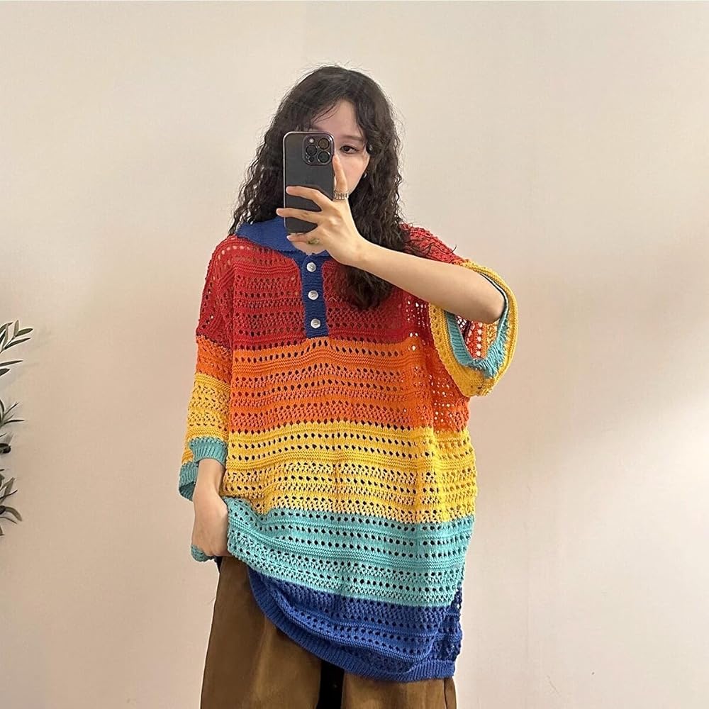 الميزة: طراز عصري ومثير. مصمم بأكمام نصف مخططة بألوان قوس قزح ومواد مجوفة، الصورة الظلية البسيطة والكبيرة الحجم جذابة. تصميمنا الأنيق يكمل مظهرك بغض النظر عن المناسبة، مما يجعلها قطعة متعددة الاستخدامات تتماشى بسهولة مع أساسيات خزانة ملابسك