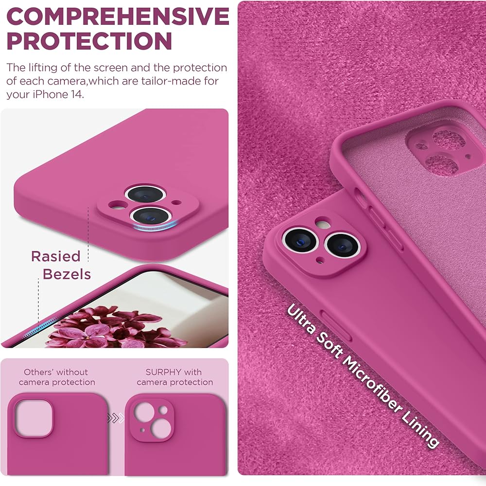 【جراب هاتف مع عبوتين من واقي الشاشة 】جراب سيليكون سائل SURPHY لهاتف iPhone 14 مع واقي شاشة (زجاج مقسى)، إصدار 6.1 بوصة 2022.