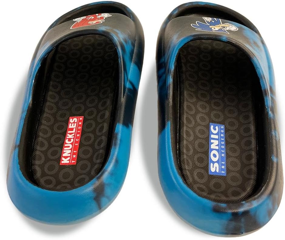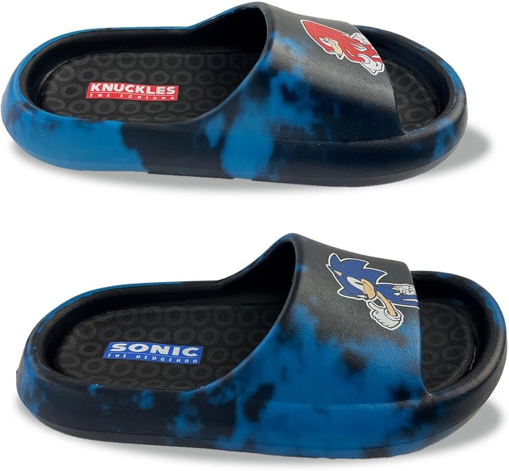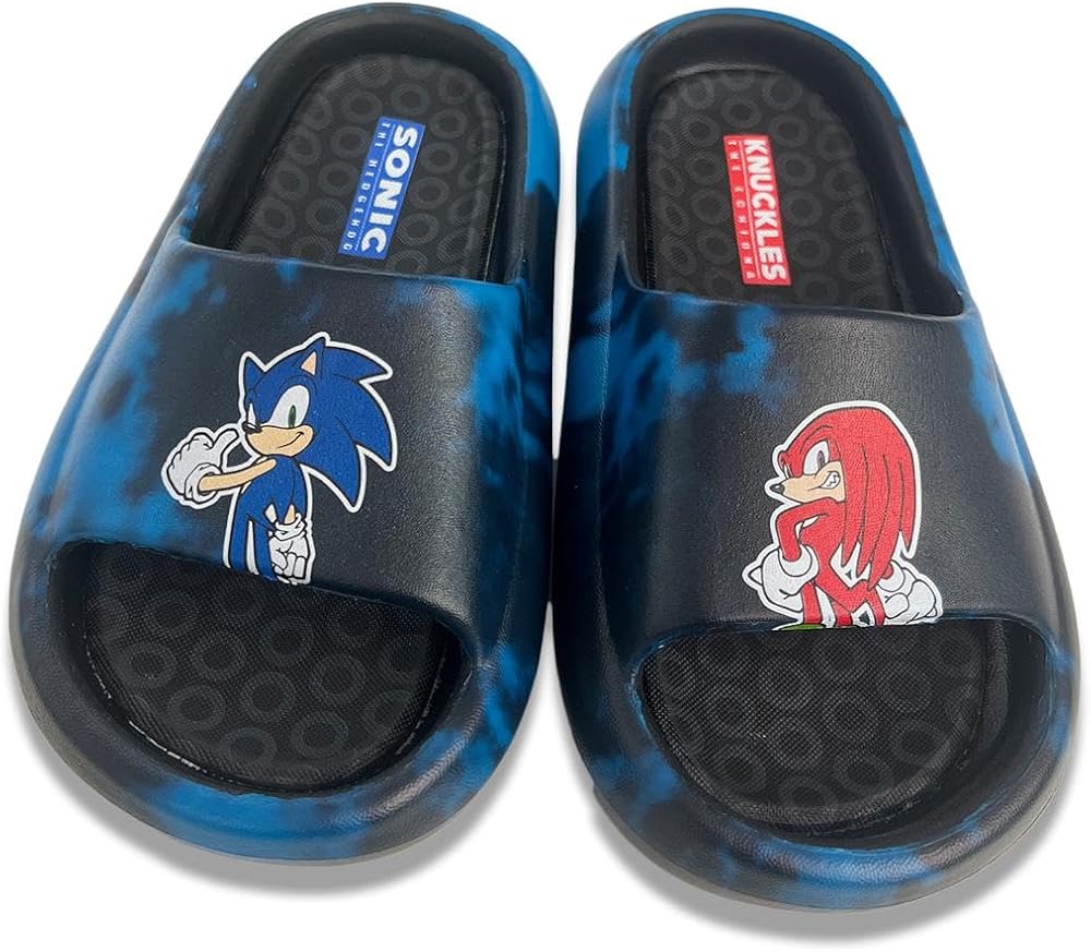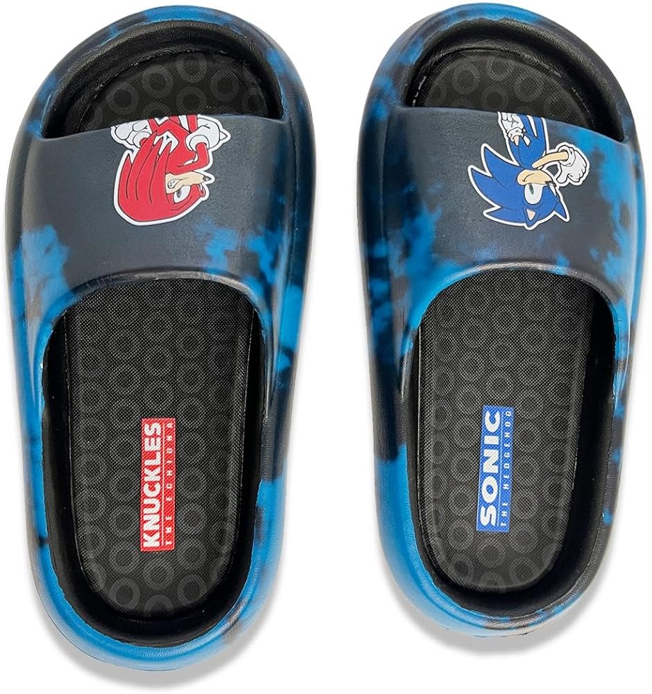 *Race into Comfort with Sonic the Hedgehog!* Let your child speed through their day with ultimate comfort and style in the Kids' Sonic Cloud Sandal Slides. Perfect for little Sonic fans, these sandals combine plush comfort with the cool, iconic style of Sonic the Hedgehog, making every step an adventure. *Key Features:* - *Cloud-Like Comfort:* Designed with an ultra-soft, cushioned footbed, these sandals provide cloud-like comfort that supports and pampers your child's feet throughout the day. Ideal for active play and casual wear, your child will feel like they are walking on air. - *Cool Sonic Design:* Featuring vibrant blue hues and dynamic Sonic the Hedgehog graphics, these sandals are a must-have for any young fan. The iconic Sonic logo and energetic design add a touch of fun and excitement to any outfit. - *Durable & Reliable:* Constructed from high-quality, durable materials, these sandals are built to endure the energetic activities of kids. The sturdy, non-slip sole ensures excellent grip and stability, providing safe and secure footing on various surfaces. - *Easy Slip-On:* With a convenient slip-on design, these sandals are easy for kids to put on and take off by themselves, promoting independence and making them perfect for spontaneous adventures and busy mornings. - *Versatile Style:* Perfect for a variety of occasions, from beach trips and poolside fun to casual outings and lounging at home. These sandals pair effortlessly with shorts, swimsuits, and more, making them a versatile addition to your child's wardrobe. *Product Specifications:* - *Material:* High-quality synthetic upper, cushioned foam footbed, non-slip rubber sole. - *Available Sizes:* Little Kid sizes 10-2. - *Color:* Vibrant Blue with Sonic the Hedgehog graphics. - *Care Instructions:* Spot clean with a damp cloth; air dry. *Why Choose Sonic Cloud Sandal Slides?* - *Unmatched Comfort:* Your child will love the cloud-like comfort and support, perfect for everyday wear. - *Fun and Stylish:* The Sonic-themed design adds a pop of color and fun to any outfit. - *Durability for Active Kids:* High-quality materials ensure these sandals can keep up with your child's adventures. - *Perfect Gift Idea:* Ideal for birthdays, holidays, or just because—these sandals are sure to delight any young Sonic fan. *Let your child race into comfort and style with the Kids' Sonic Cloud Sandal Slides. Order today and watch them zoom into their next adventure!*