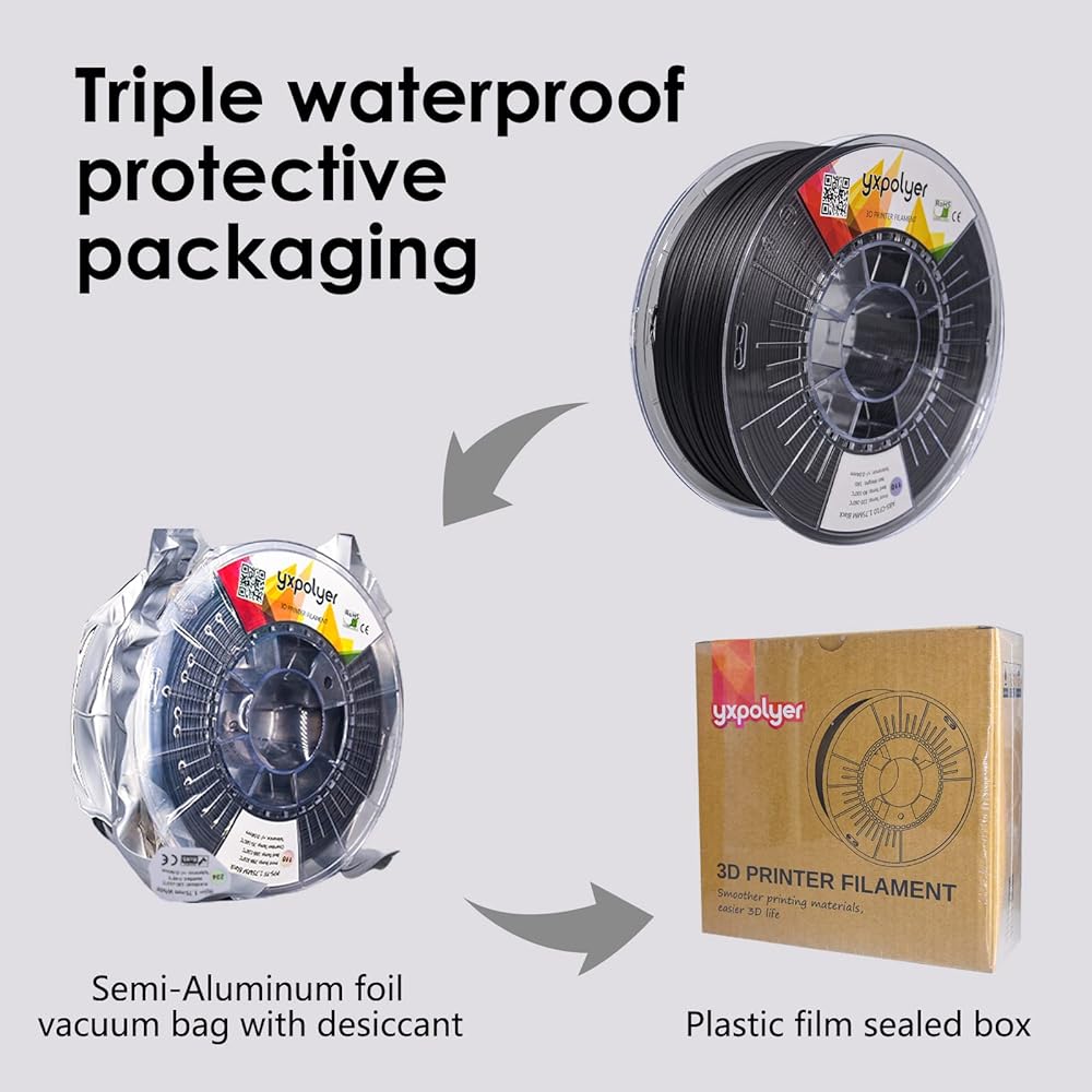 ★قطر الفتيل الهندسي 1.75 مم: دقة الأبعاد من ألياف الكربون ABS +/- 0.04 مم. تتميز خيوط YXPOLYER بتوافق واسع بسبب خطأ القطر الصغير، وهي مناسبة لجميع طابعات FDM ثلاثية الأبعاد مقاس 1.75 مم تقريبًا.