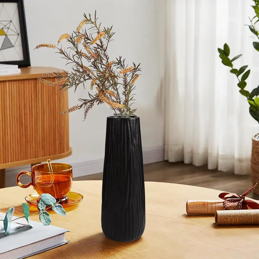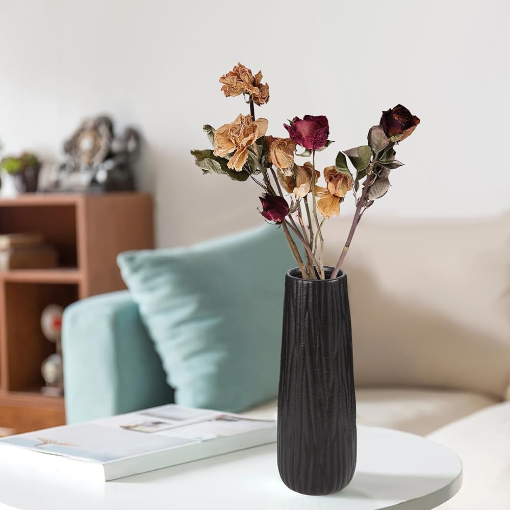 متعددة الاستخدامات: تتميز هذه المزهرية الخزفية السوداء بتصميم بسيط وحديث. يمكنك وضعها في غرفة المعيشة وغرفة الطعام وغرفة النوم وغرفة القراءة والمكتب والمزيد. (لا يتم تضمين الزهور)