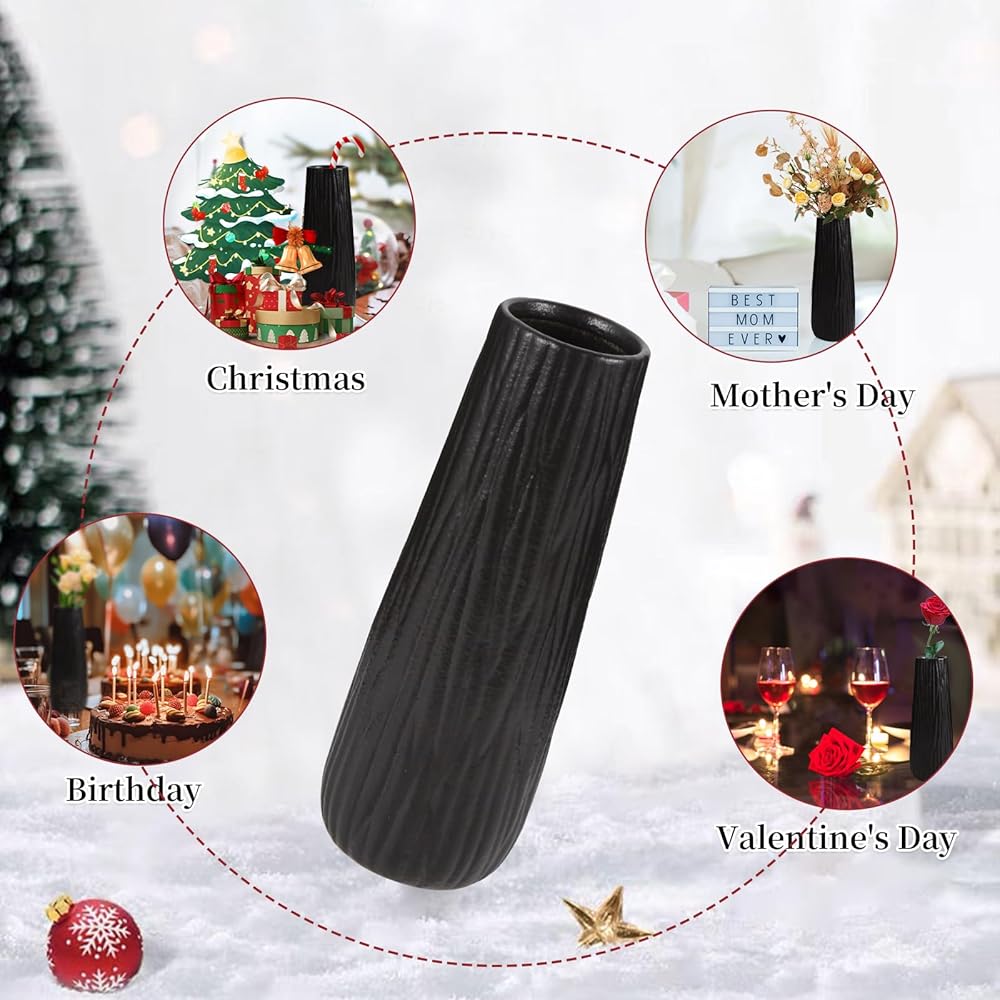 كهدية: يمكن لهذه المزهرية الخزفية السوداء الجميلة أن تعزز بشكل مثالي مظهر أي طاولة في قطع مركزية، أو كهدية أو كقطعة مركزية لاحتفالات الذكرى السنوية للزفاف، وأعياد الميلاد، والكريسماس، والحفلات، والعطلات، والعشاء، وعيد الشكر.. إلخ، ستكون هذه المزهرية الخيار الأمثل لديكور المنزل والهدايا.