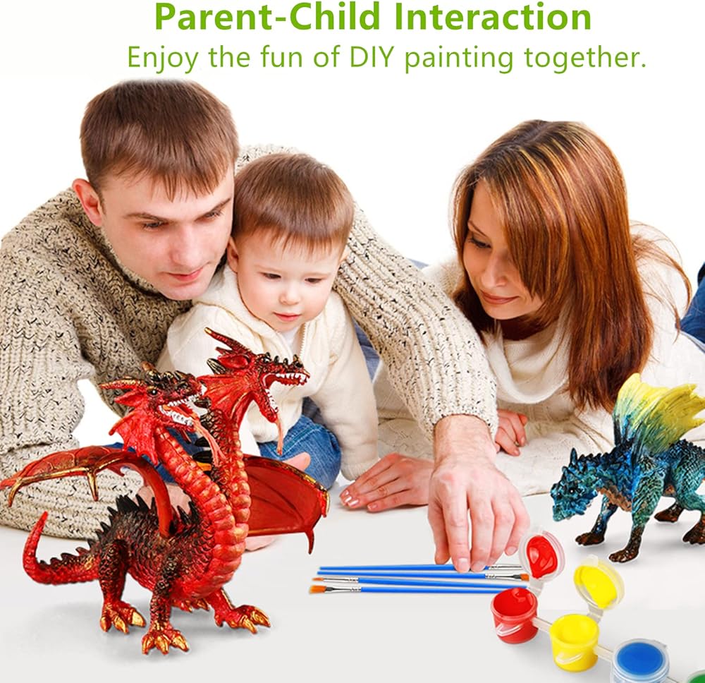 • [مواد عالية الجودة وآمنة] المجموعة الفنية للأطفال مصنوعة بدقة من مواد أكريلونتريل بوتادين ستايرين عالية الجودة، آمنة وغير ضارة، من خلال مجموعة متنوعة من شهادات السلامة الدولية. التنين مصنوع من مادة الفينيل، وهي متينة ومقاومة للسقوط والتآكل. يمكن غسل الطلاء بالماء، ويمكن إعادة طلاء دراجون بشكل متكرر.