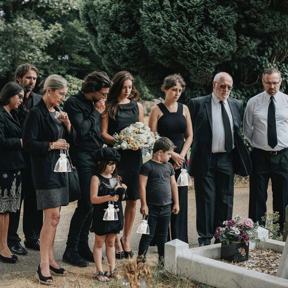 🤍مواد عالية الجودة: ديكورات الجنازة مصنوعة من مواد خشبية، موثوقة وصلبة، وناعمة، ولن تنكسر بسهولة؛ البطاقات مصنوعة من مادة ورقية، والكلمات مطبوعة بحيث لا تبهت بسهولة؛ تعتبر أكياس الأورجانزا غلافًا أنيقًا ووقائيًا للرموز والبطاقات. يمكن أن يرافقك لفترة طويلة في السنوات القادمة.