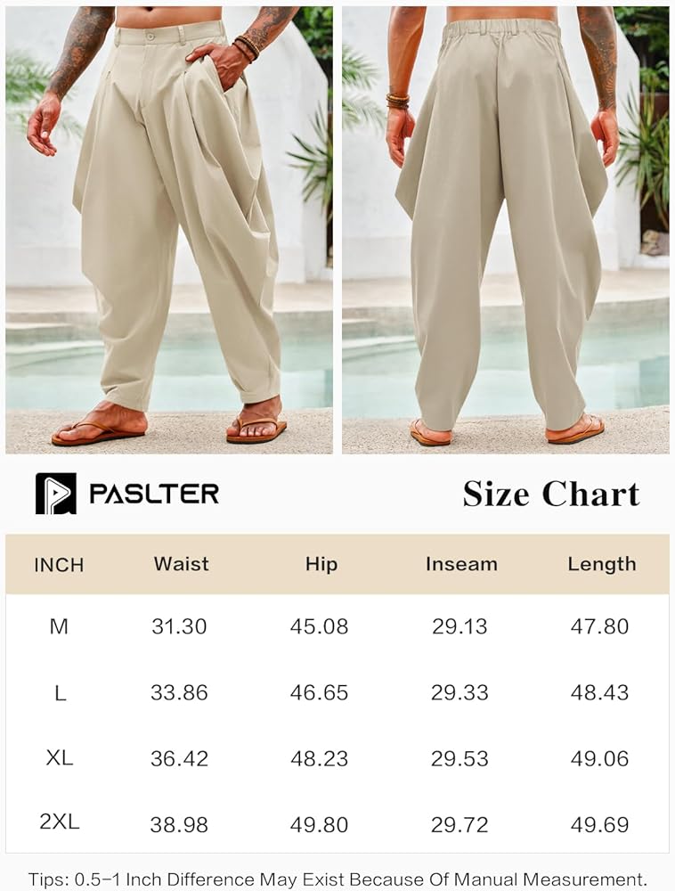 【الخامة: بنطال علاء الدين للرجال مصنوع من القطن بنسبة 100%، صديق للبشرة، نسيج خفيف الوزن وجيد التهوية، يبقيك مرتاحًا ومنتعشًا في الصيف