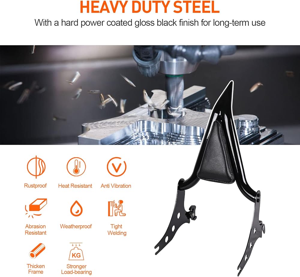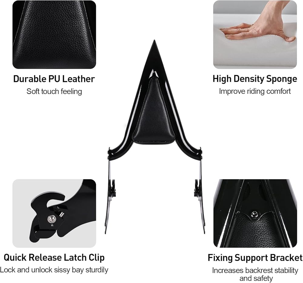 صناعة يدوية ذات جودة تدوم طويلاً ► ▶ الهيكل الصلب والفولاذ غير الملحوم بقطر 1.5 بوصة يجعل قضيب Sissy القابل للفصل من أجل Fat Boy ليس من السهل كسره، وهو متين للاستخدام طويل الأمد، مع لمسة نهائية سوداء لامعة مطلية بالطاقة للحصول على مظهر مقاوم للصدأ وأنيق. وسادة مسند الظهر سيسي مصنوعة من جلد صناعي مقاوم للماء وجيد التهوية، ومدمجة بكثافة عالية وإسفنجة ناعمة، وتوفر دعمًا كافيًا للظهر وتخفيف الضغط للركاب وتحسين راحة الركوب في الرحلات الطويلة.