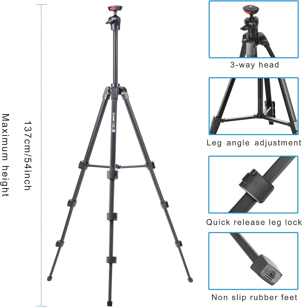 ▲【ارتفاع قابل للتعديل مع قفل قلاب】أرجل عمودية من 4 أقسام مع أقفال رافعة سريعة الفك تسمح لك بتعديل ارتفاع العمل من 16.5 بوصة إلى 54 بوصة في ثوانٍ، وهي سريعة الإعداد/الإزالة وسوف تناسب بيئات التصوير المختلفة و احتياجات التصوير الفوتوغرافي، والتي يمكن أن تساعدك في الحصول على المزيد من المناظر الرائعة.