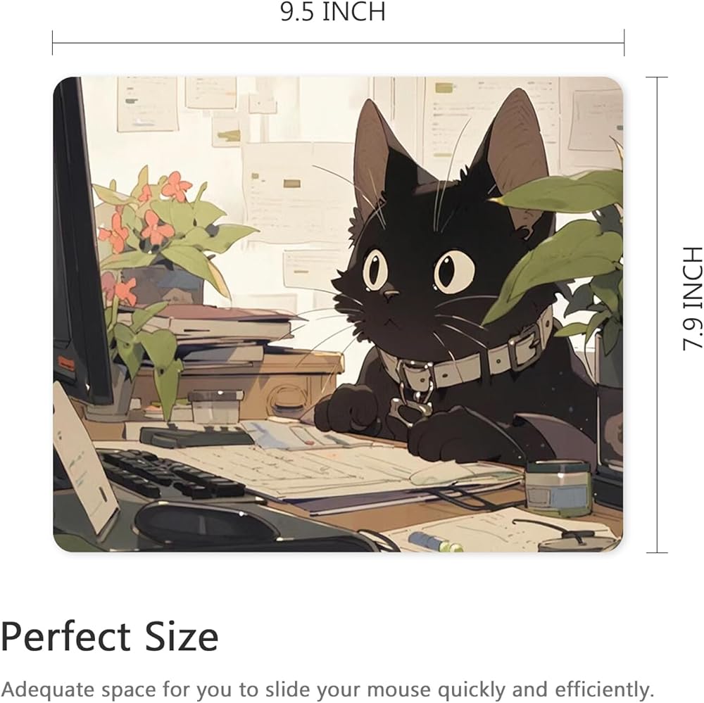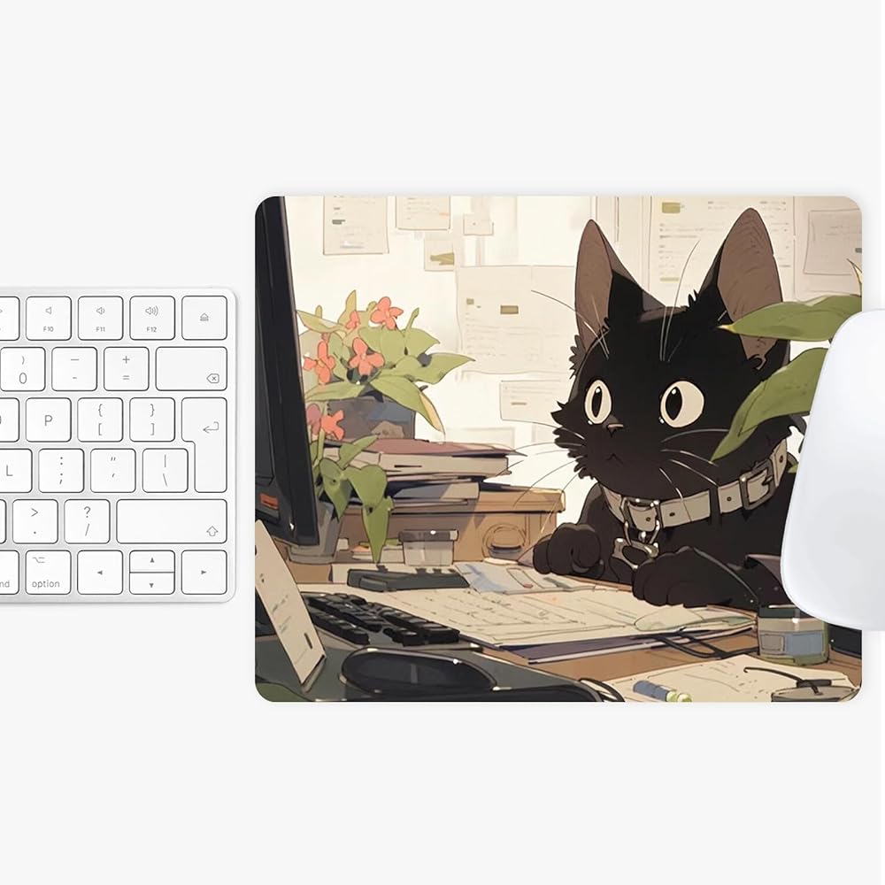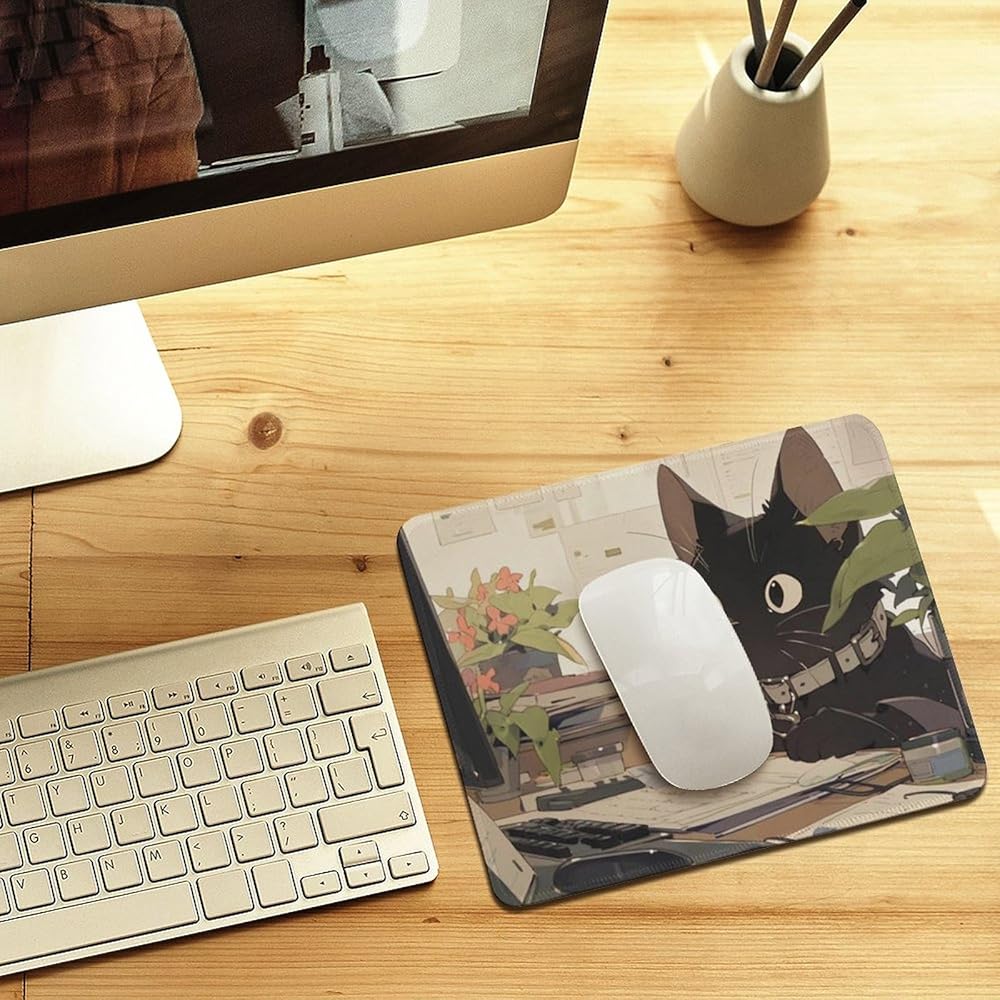 Whimsical Cat Design: Transform your workspace with this delightful mouse pad featuring an adorable and humorous cat at work theme. Each glance at your desk will bring a smile to your face as you see the antics of these playful felines.