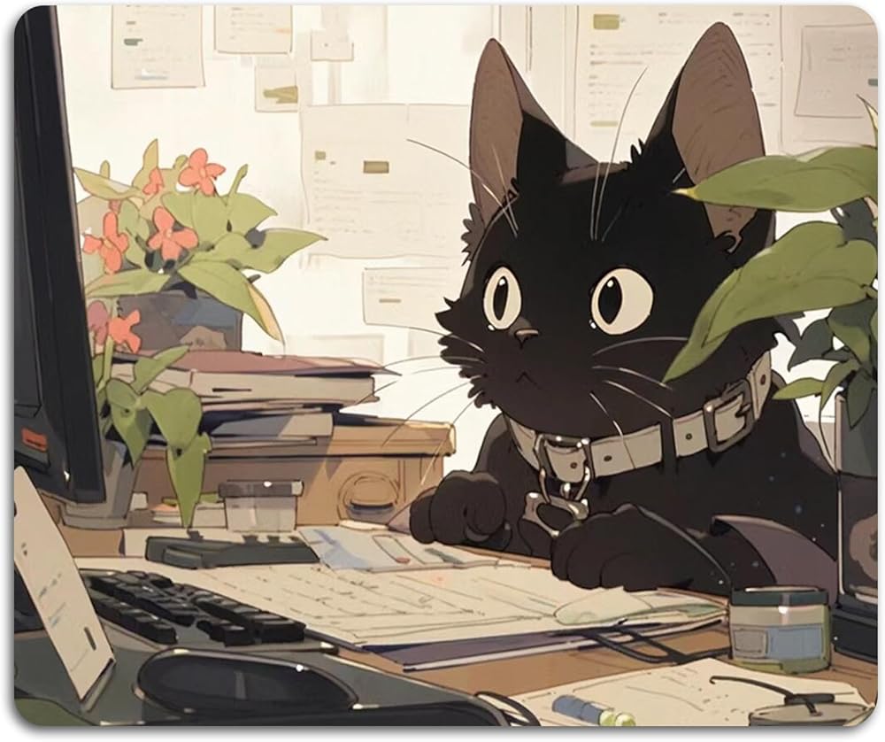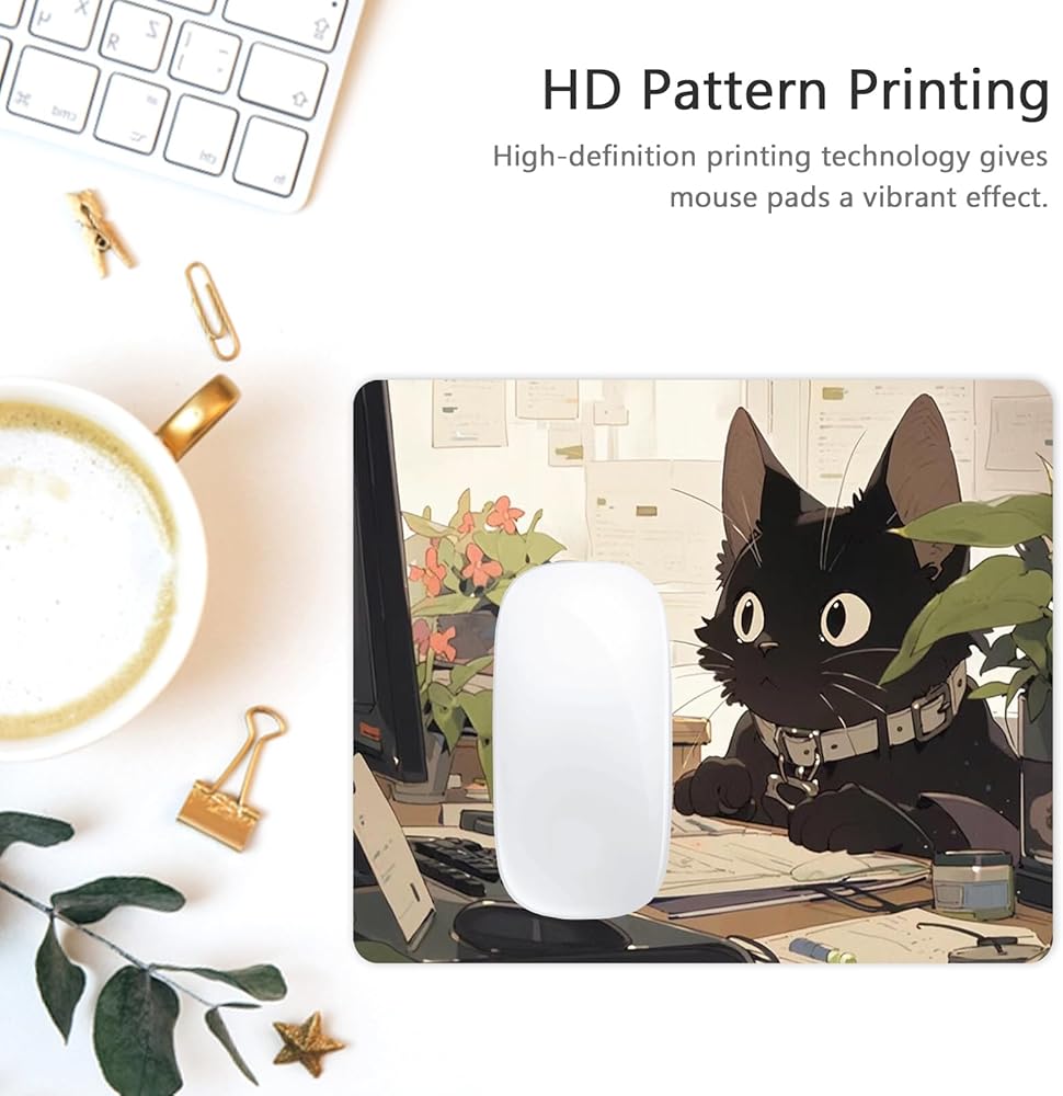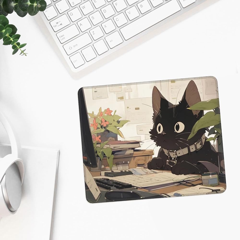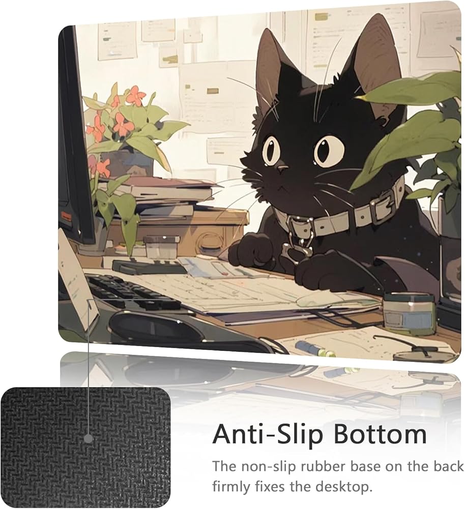 Whimsical Cat Design: Transform your workspace with this delightful mouse pad featuring an adorable and humorous cat at work theme. Each glance at your desk will bring a smile to your face as you see the antics of these playful felines.