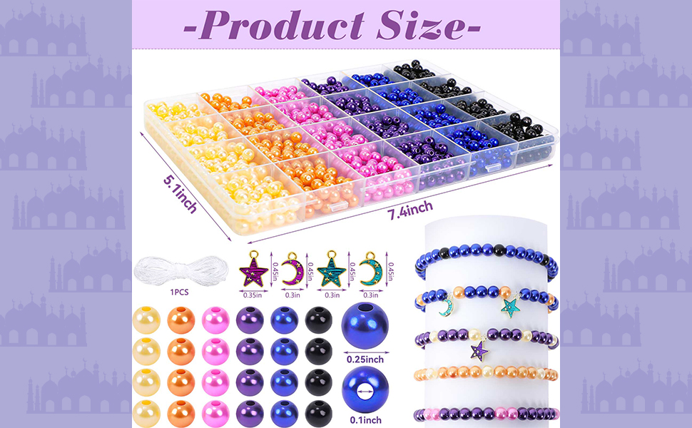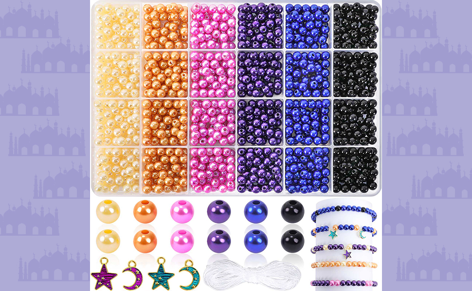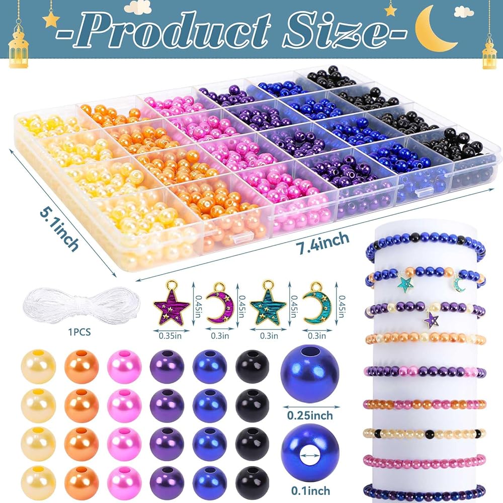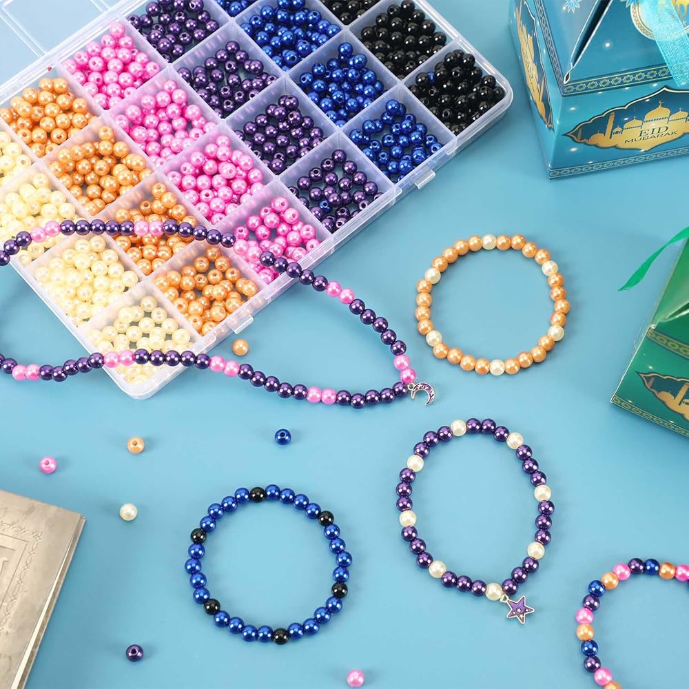 MARFOREVER 1200 قطعة من خرزات رمضان زينة اللؤلؤ لصنع المجوهرات 6 مم خرز دائري صغير حشو اللؤلؤ لعيد مبارك طقم صناعة الأساور DIY قلادة وأقراط مجموعة الحرف اليدوية