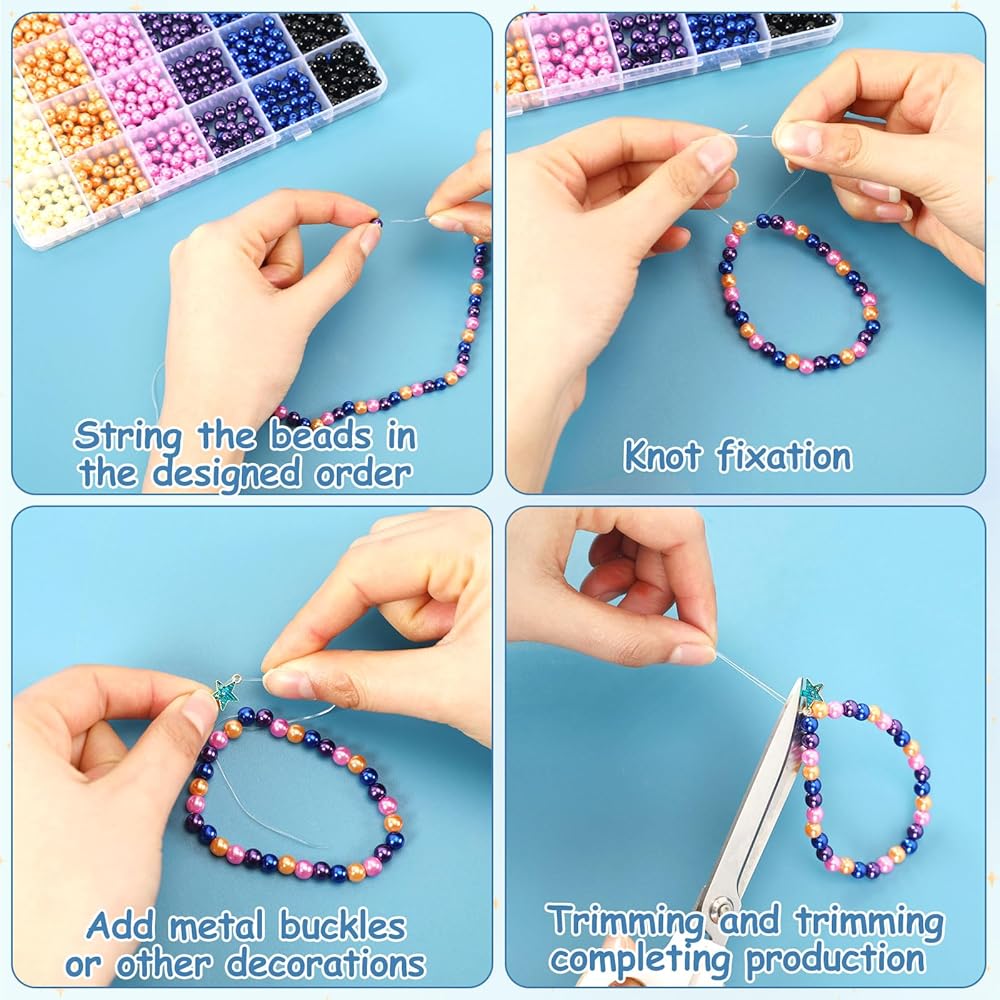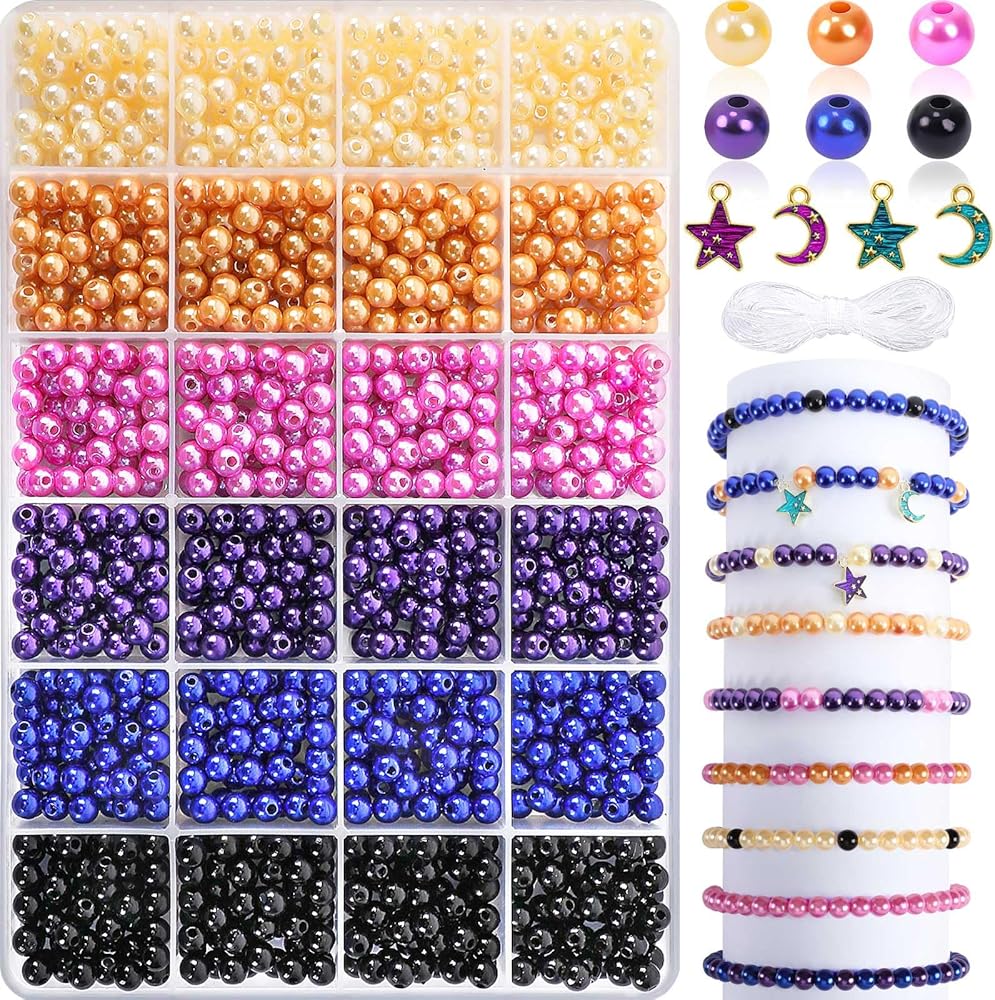 محتويات العبوة: سوف تحصل على 1200 قطعة من مجموعة خرز اللؤلؤ مقاس 6 مم، والتي تتضمن خيط كريستال 0.6 مم، وإكسسوارات قمر ونجمتين، مما يوفر لك خيارات ملونة، تلبي احتياجاتك الإبداعية المتنوعة التي تصنعها بنفسك