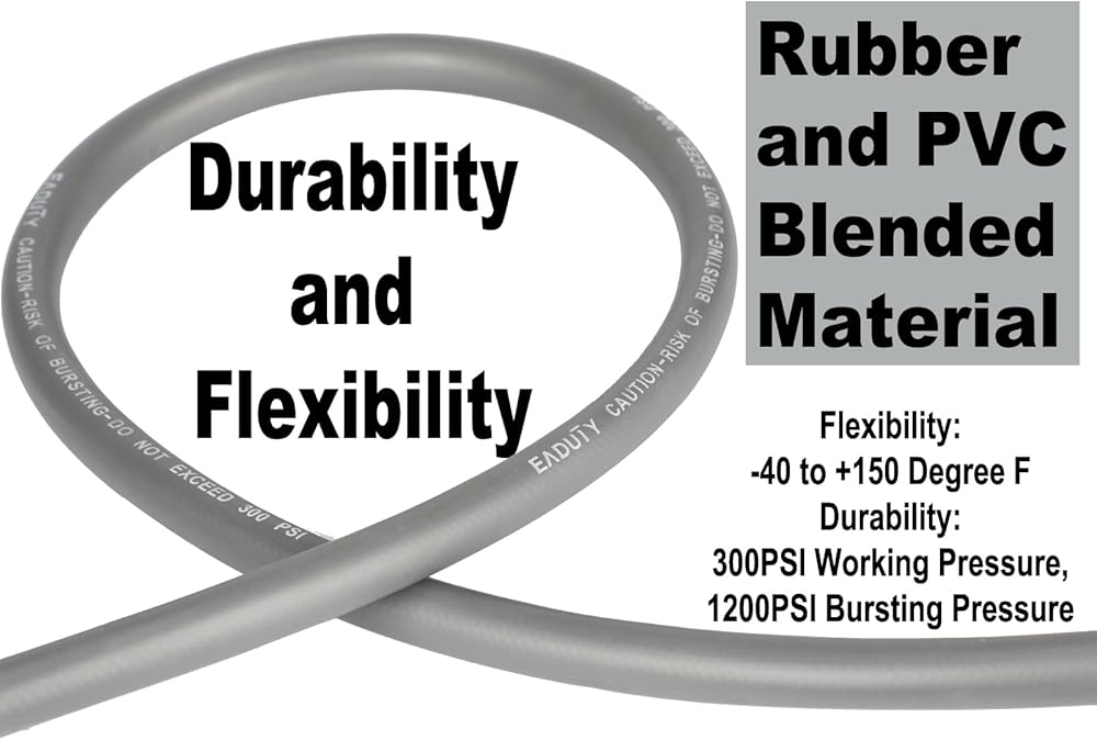 • ➤ متين للغاية: يمكن لخرطوم الهواء الهجين هذا أن يتحمل الحد الأقصى. ضغط العمل 300 رطل لكل بوصة مربعة، ضغط الكسر 1200 رطل لكل بوصة مربعة.