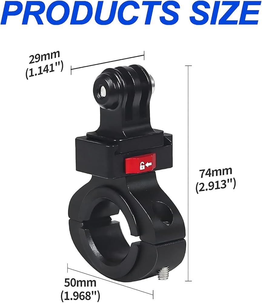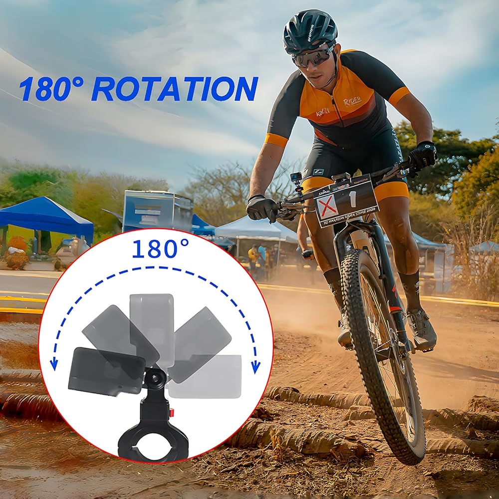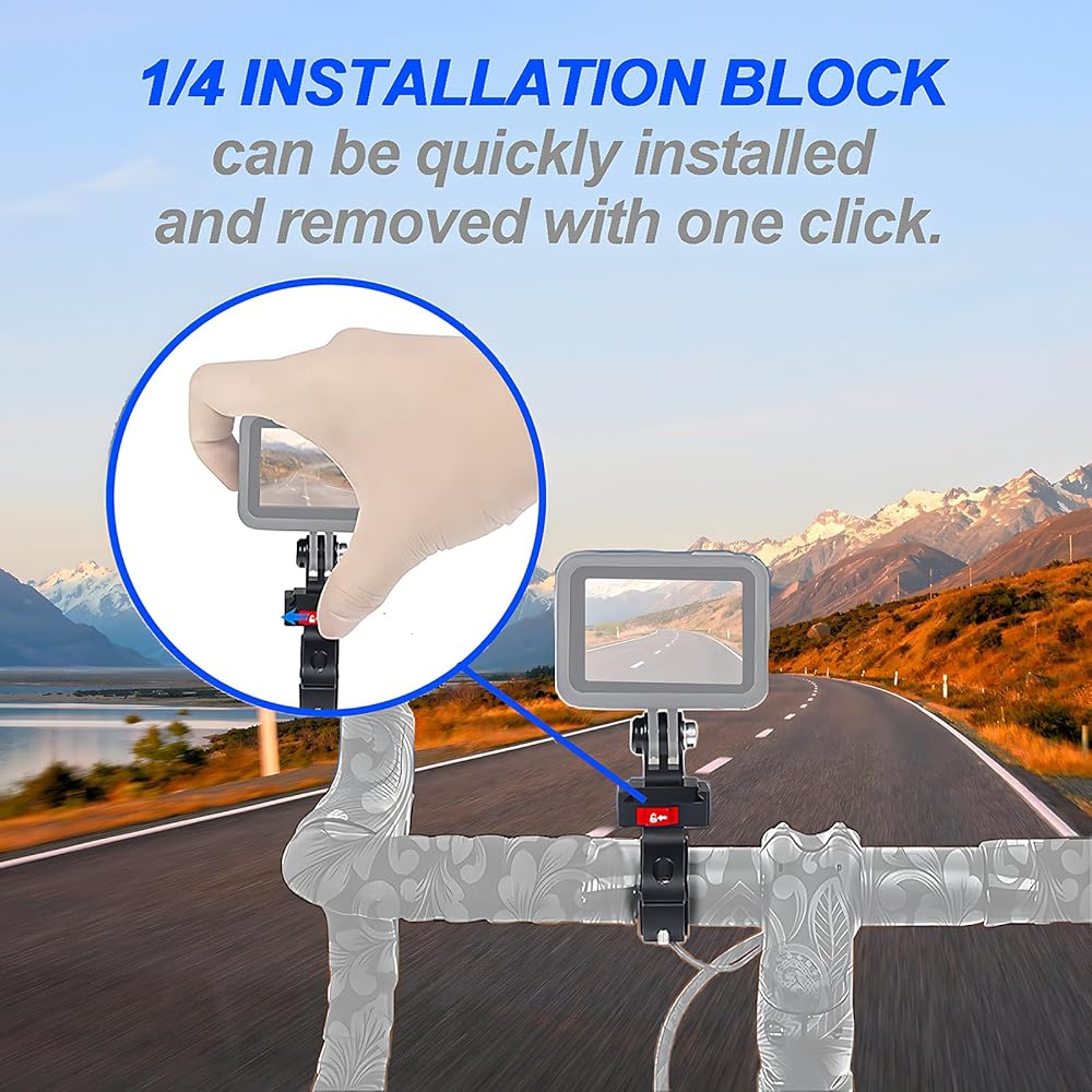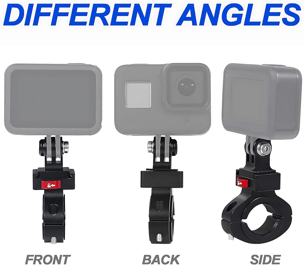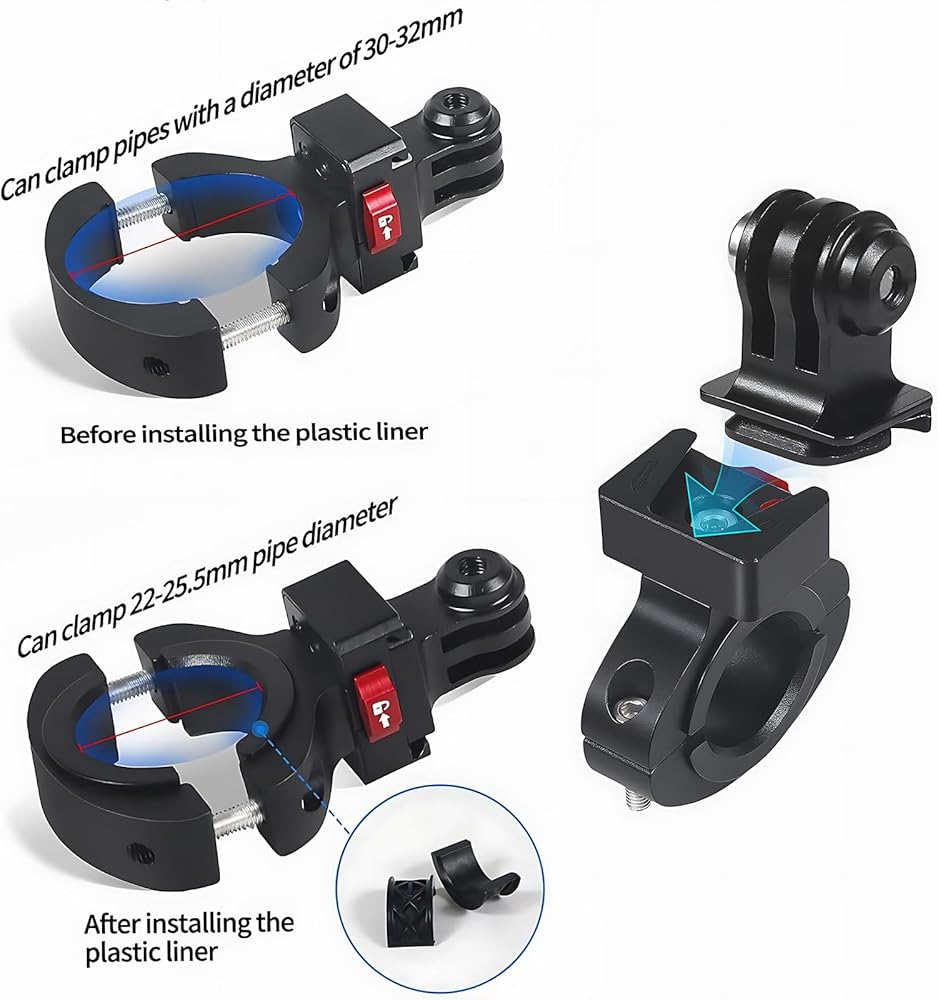 Great action camera mount choice! This aluminum bike handlebar mount is specifically designed for Gopro Hero 11/10/9/8/7/6/5/4 Session, AKASO, Campark, Insta 360 ONE, and other similar sports cameras. The clamp features a plastic cushion on the inside to protect your device from scratches, and it is waterproof, rustproof, and corrosion-resistant, suitable for pipe diameters of 0.87" to 1" (22mm-25.5mm). Additionally, it offers full 360-degree rotation and self-tightening adjustment, allowing you to easily achieve the desired shooting angle. Whether you're cycling, mountain biking, off-road motorcycling, or engaging in other action sports, this mount is perfect for capturing thrilling moments. Get yours now and start enjoying endless possibilities!