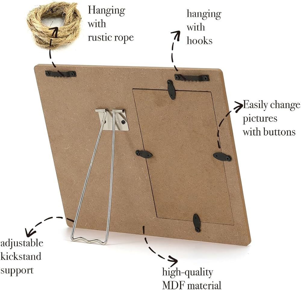 TWO-WAY TO DISPLAY: There are two ways to place this photo frame, such as mounting it on the wall, or placing it on the table directly. In addition to that, we are also equipped with a rope, you can hang the photo frame with a rope.