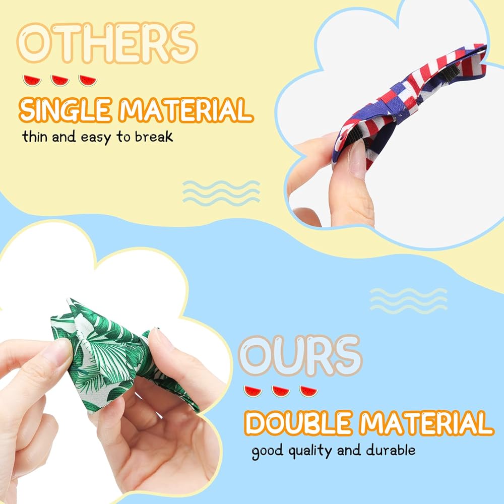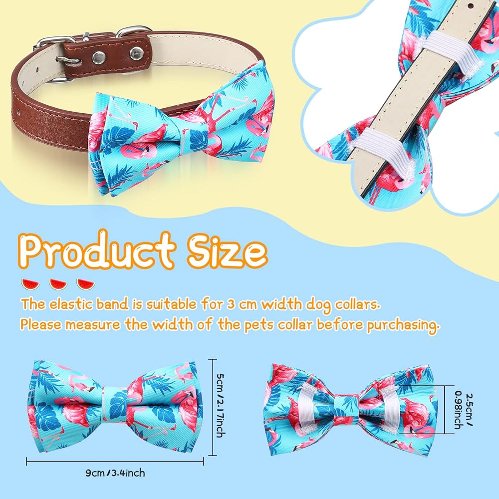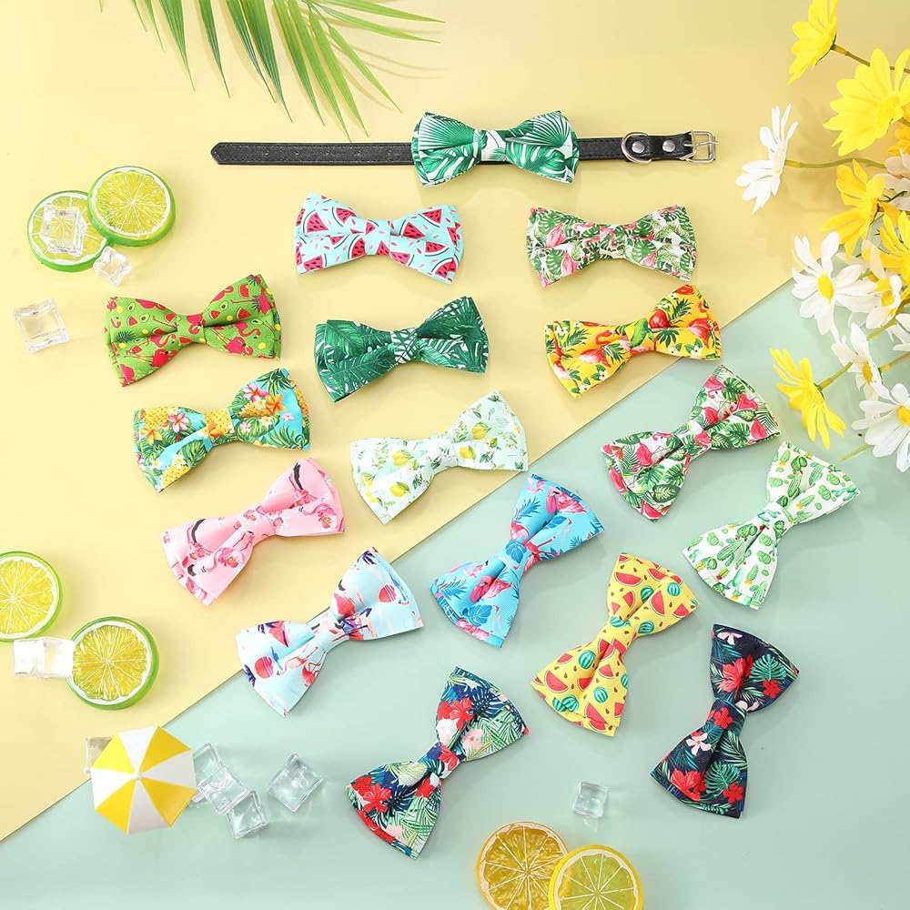 These dog collar bows come in 16 different designs, they are printed with many cute patterns like flamingo, palm leaves, fruits, flowers, cactus, etc., making your pets more attractive and adorable.