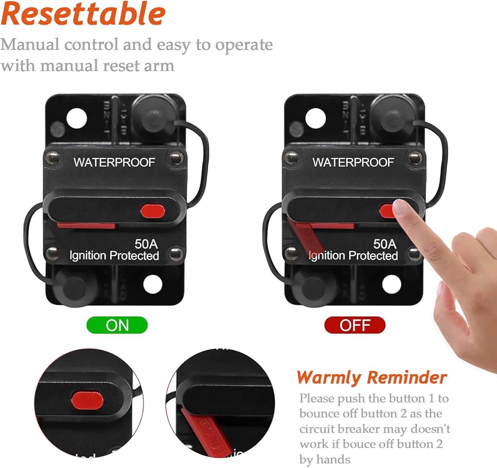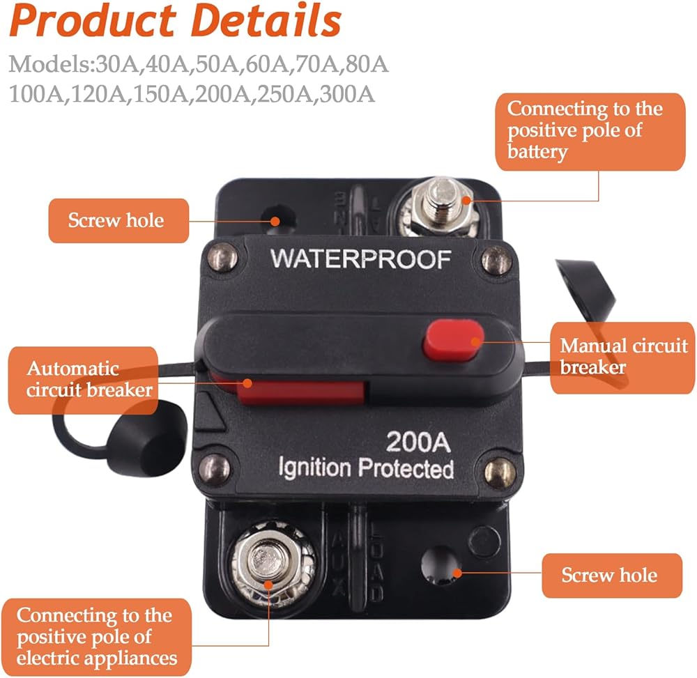 • [قاطع دائرة عالي التيار] باستخدام الهياكل ثنائية المعدن، عندما تكون الدائرة محملة بشكل زائد، حماية سريعة للطاقة. تستخدم على نطاق واسع في المركبات الخاصة، ونش المركبات على الطرق الوعرة، واليخوت، والتحكم الكهربائي في السفن.