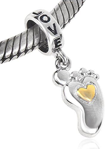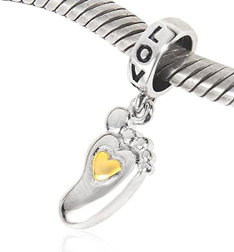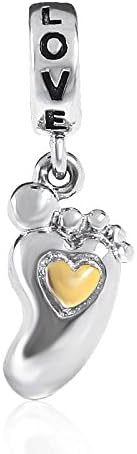 سحر بصمة الطفل من Love Baby مصنوع من الفضة الإسترليني عيار 925 المطلية بالذهب على شكل قلب يناسب السوار الأوروبي