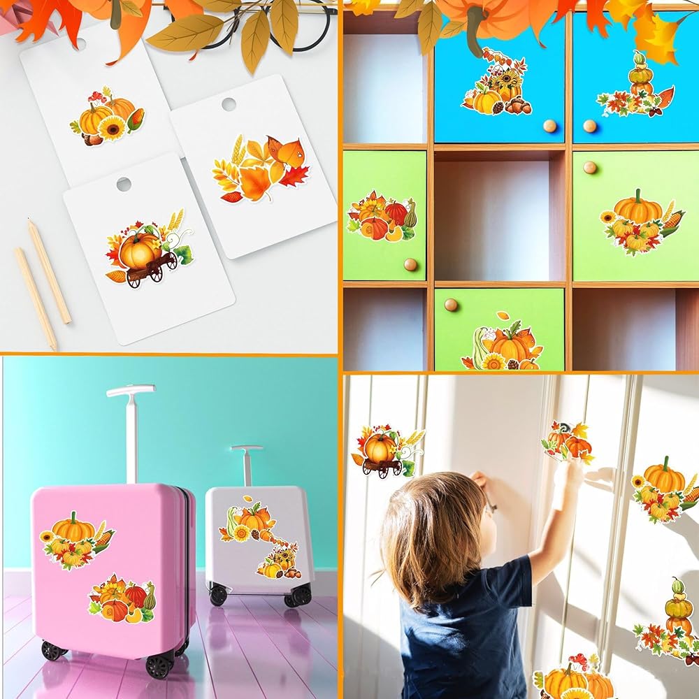 🍁HIGH QUALITY: Autumn Harvest Stickers are made of high quality self-adhesive, self-adhesive, bright colours, can be easily peeled off and stick to smooth surfaces without leaving residue.