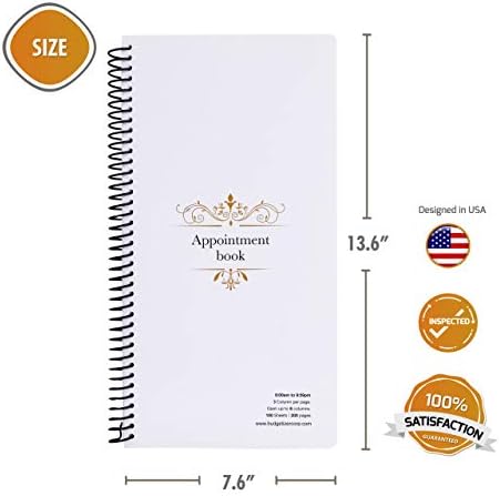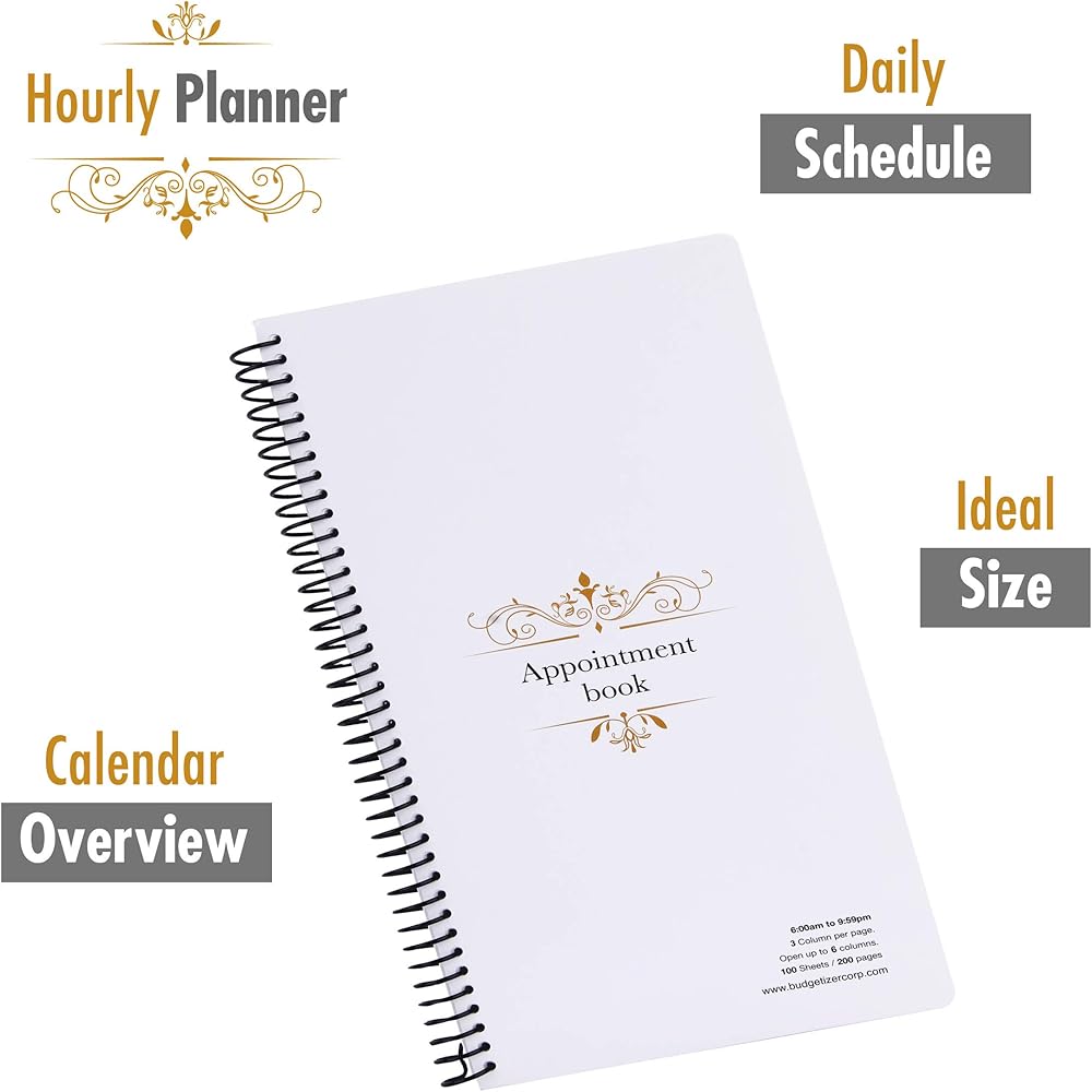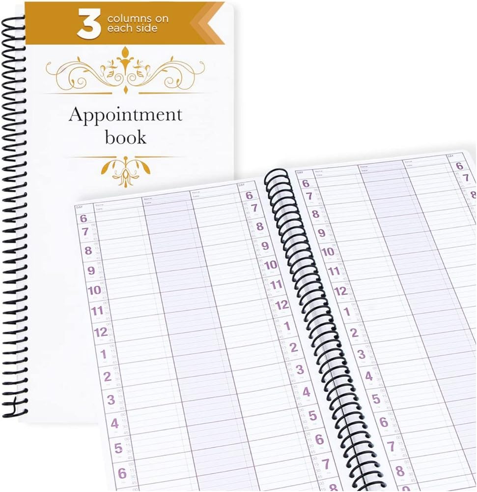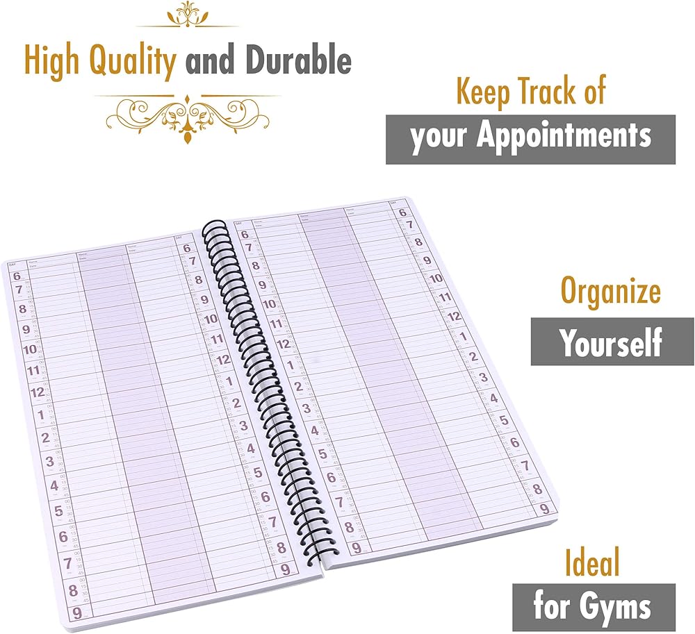 كتاب جدولة 6 أعمدة لكل صفحة يحتوي على 200 صفحة - تتضمن حزمة التخطيط الخاصة بنا كل ساعة موعد كتاب صالون مكون من 6 أعمدة (12 عمودًا - مفتوح) مع 200 صفحة (100 ورقة) وحامل أقلام مريح ذاتي اللصق مع حلقة مرنة لضمان قلمك متاح دائما. يبدأ كل يوم في الساعة 6 صباحًا وينتهي في الساعة 9:59 مساءً بزيادات قدرها 15 دقيقة؛ نحن نقدم أيضًا تصميمًا أنيقًا للغلاف وكتب مواعيد مرتبطة بشكل آمن بأرقام كبيرة مؤهلة للساعات وأرقام صغيرة لزيادات الدقائق