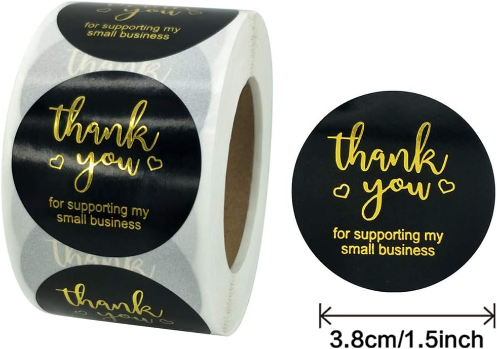 【المادة والكمية】 - ملصقات شكرًا لك مصنوعة من ورق عالي الجودة مع حروف من رقائق معدنية مطبوعة عليها، سميكة ومتينة، ولزوجة عالية، ليس من السهل كسرها ومريحة في الاستخدام؛ ملصقات شكر دائرية مقاس 1.5 سم، قطر كل قطعة 1.5 سم تحتوي كل لفة على 500 قطعة من ملصقات الملصقات.